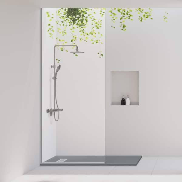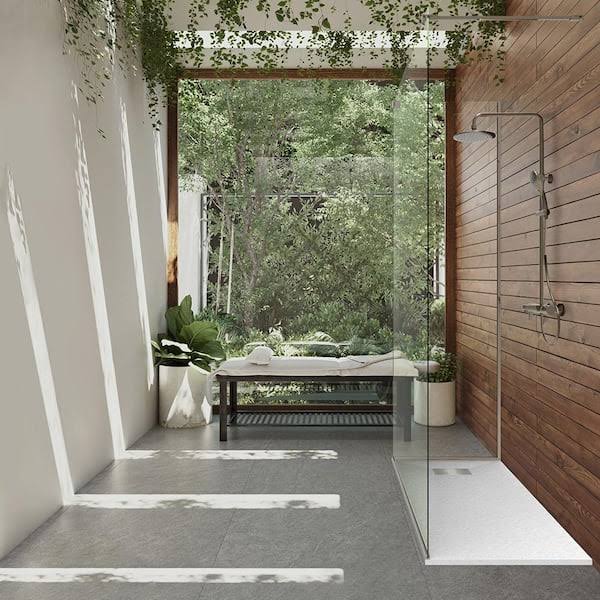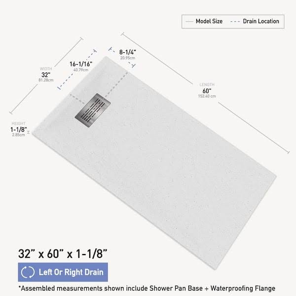 CASTICO 60 in. L x 32 in. W x 1.125 in. H Solid Composite Stone Shower Pan Base with L/R Drain in White Frost Slate, White Frost/Slate