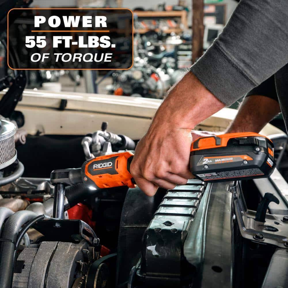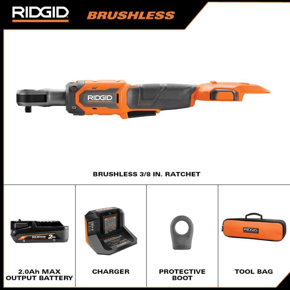 Ridgid 18V Brushless Cordless 3/8 in. Ratchet Kit with 2.0 Ah Battery and Charger and Protective Boot