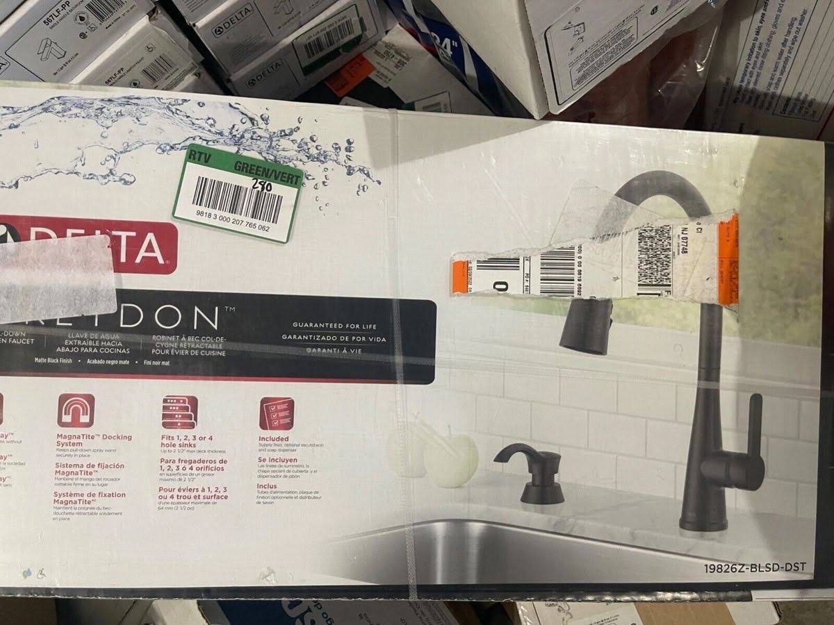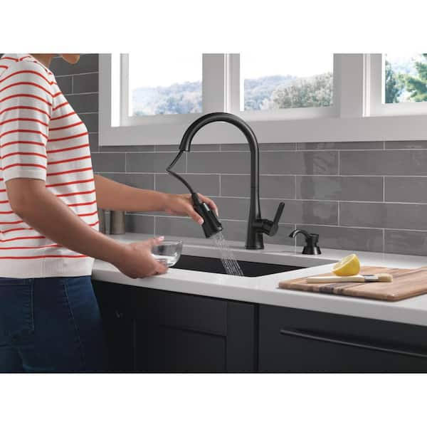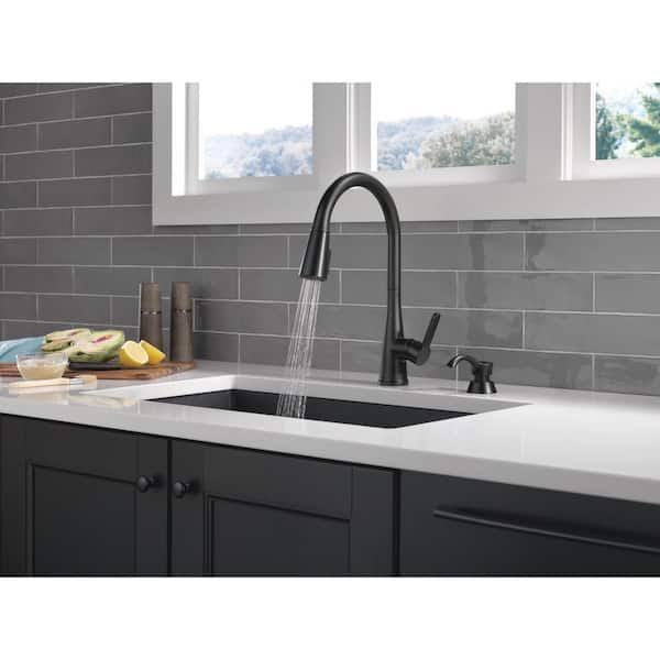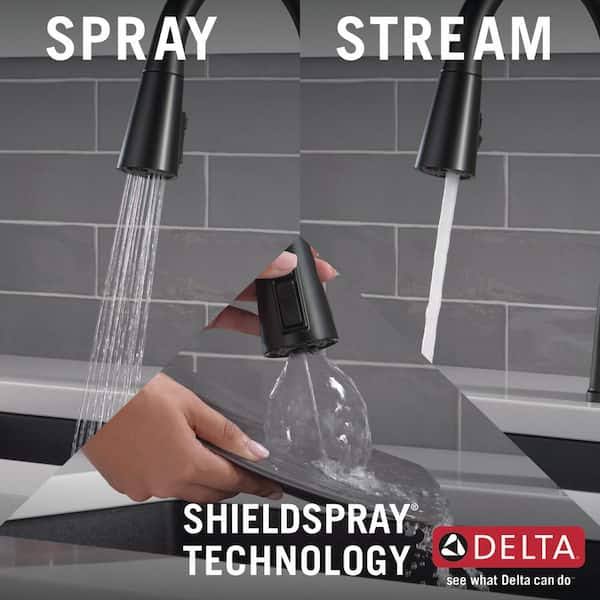 Delta Greydon Single Handle Pull Down Sprayer Kitchen Faucet with ShieldSpray and Soap Dispenser in Matte Black