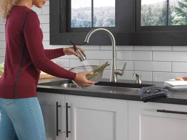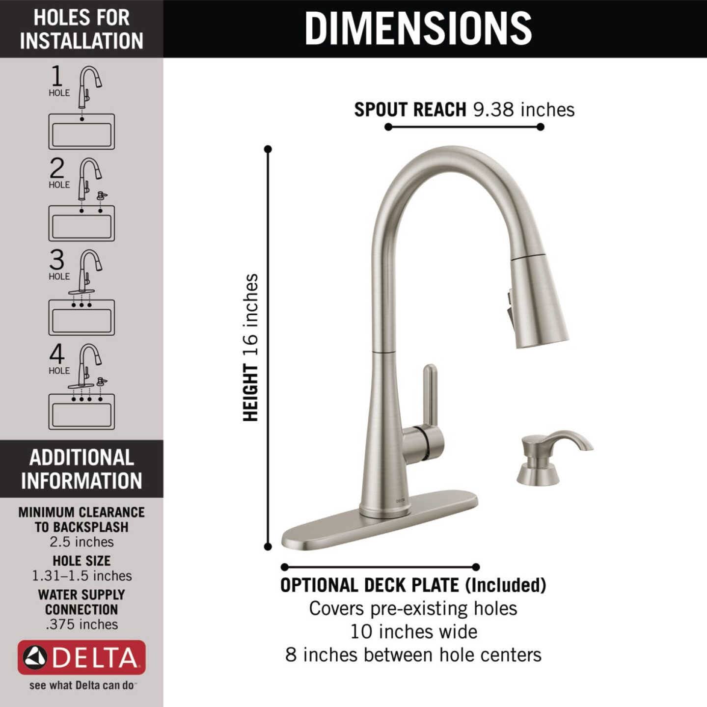 Delta Greydon Single Handle Pull-Down Kitchen Faucet with Soap Dispenser, Stainless