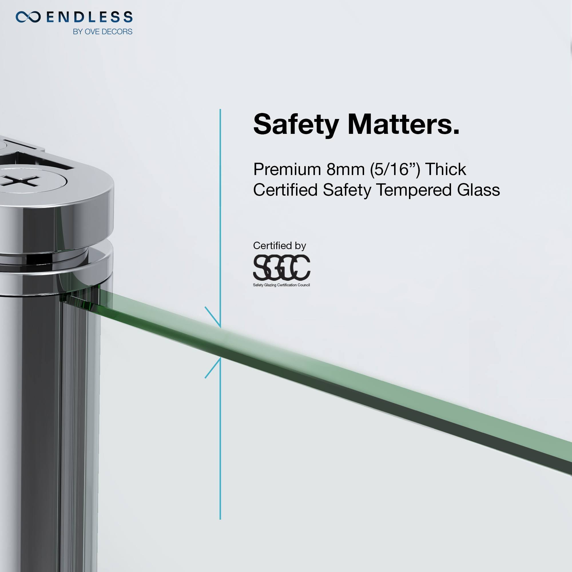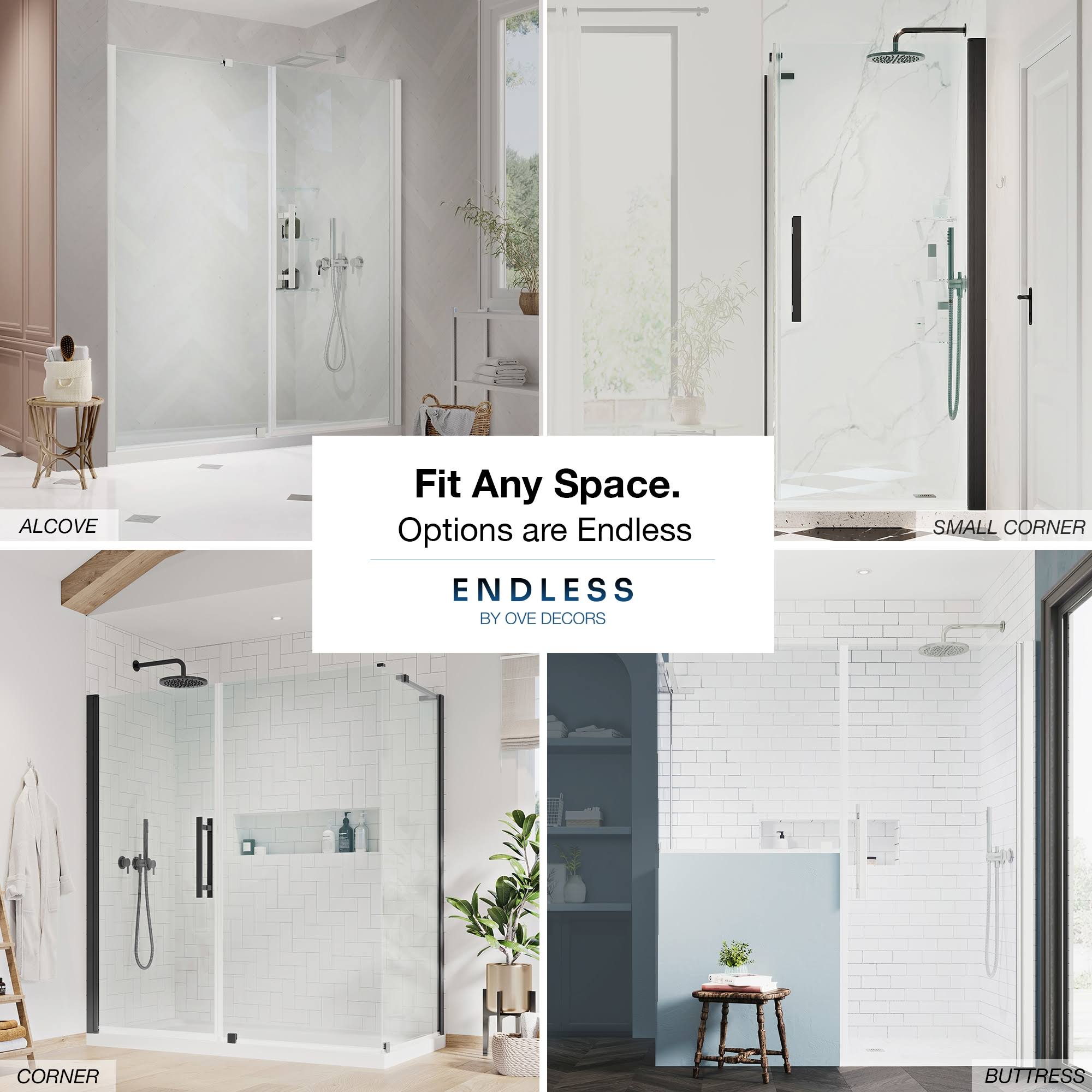 Ove Decors PA06B0100 Endless Pasadena, Buttress Alcove Frameless Shower Door, 67 7/16 to 69 7/16 in. W x 72 in. H, in Chrome
