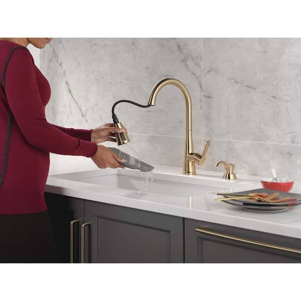 Delta Greydon Single Handle Pull-Down Sprayer Kitchen Faucet with Shield Spray and Soap Dispenser in Champagne Bronze
