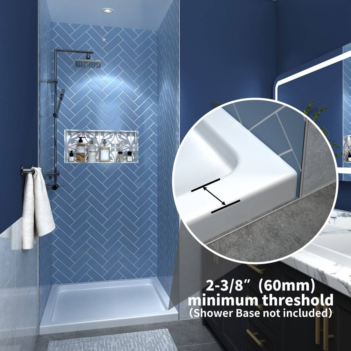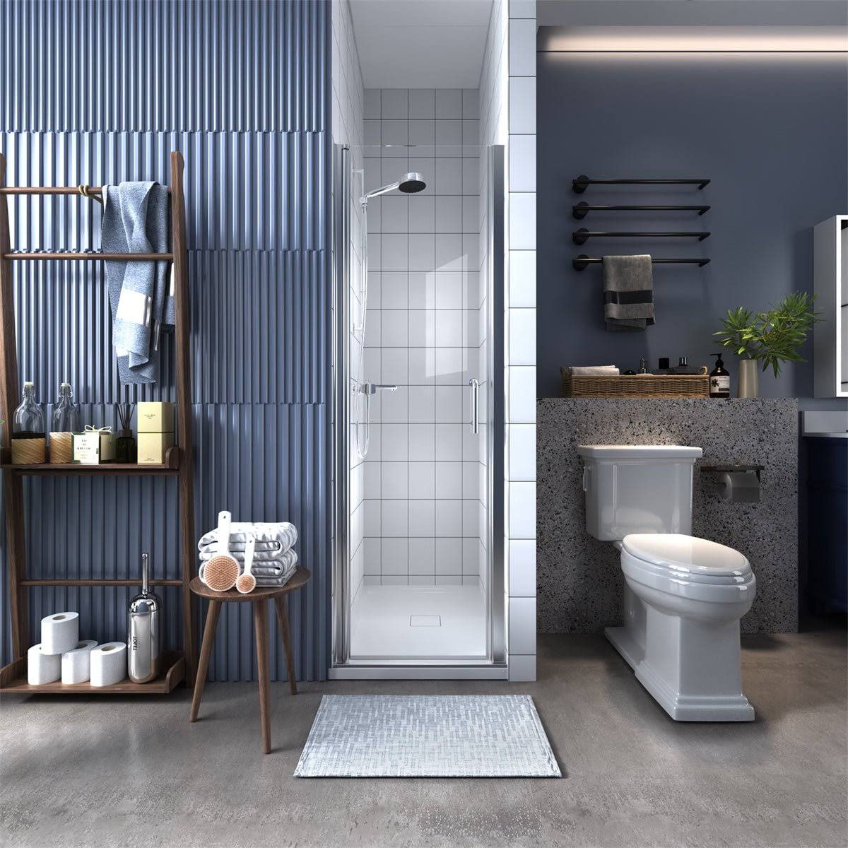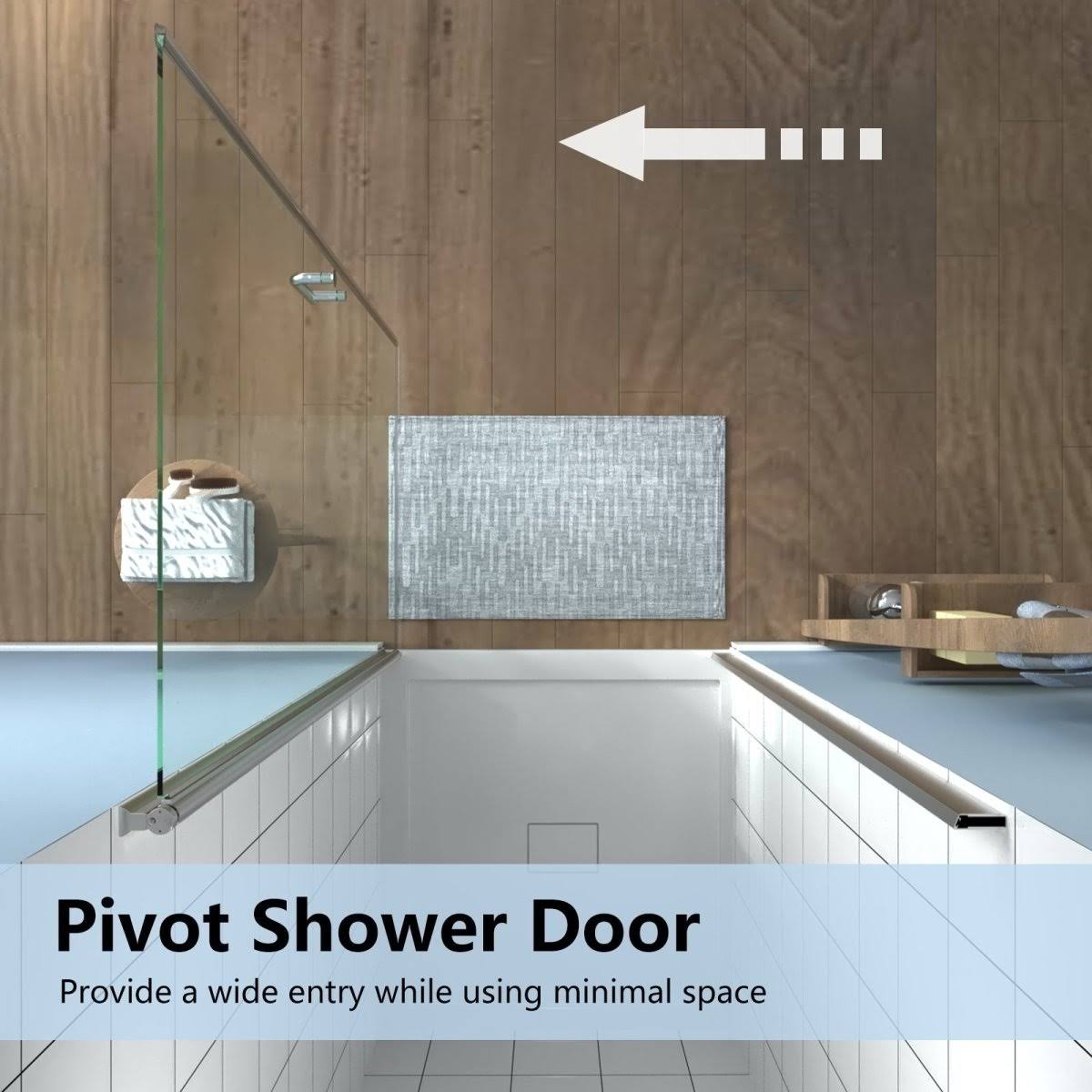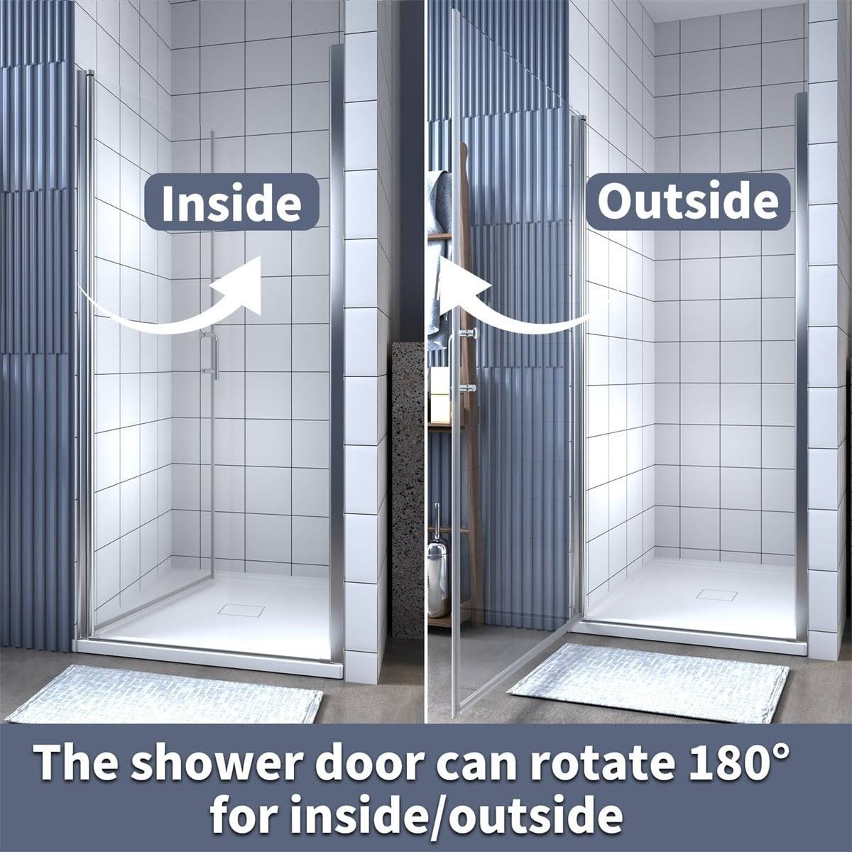 ExBrite 24-25.5 in. W x 72 in. H Small Shower Door Hinged Pivot Chrome Install Clear Glass Shower Door