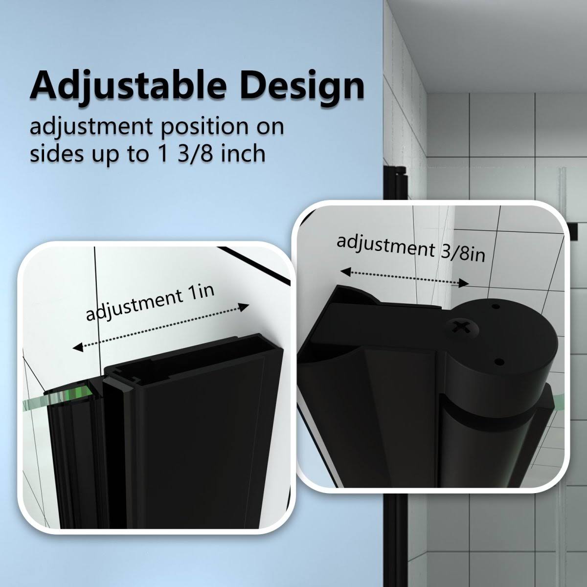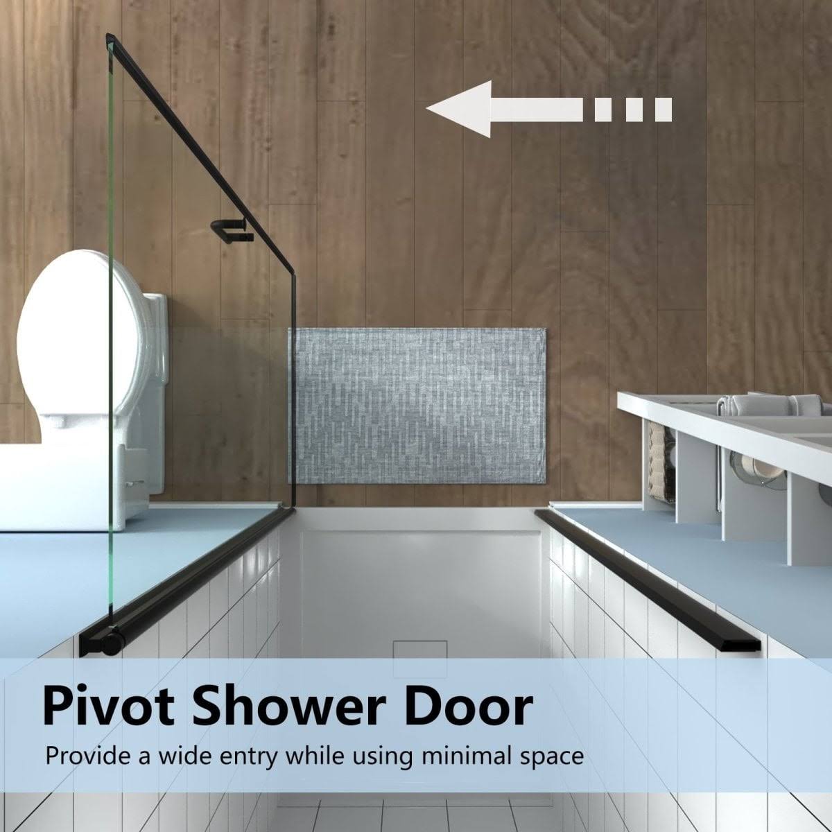 ExBrite 24-25.5 in. W x 72 in. H Small Shower Door Hinged Pivot Black Install Clear Glass Shower Door