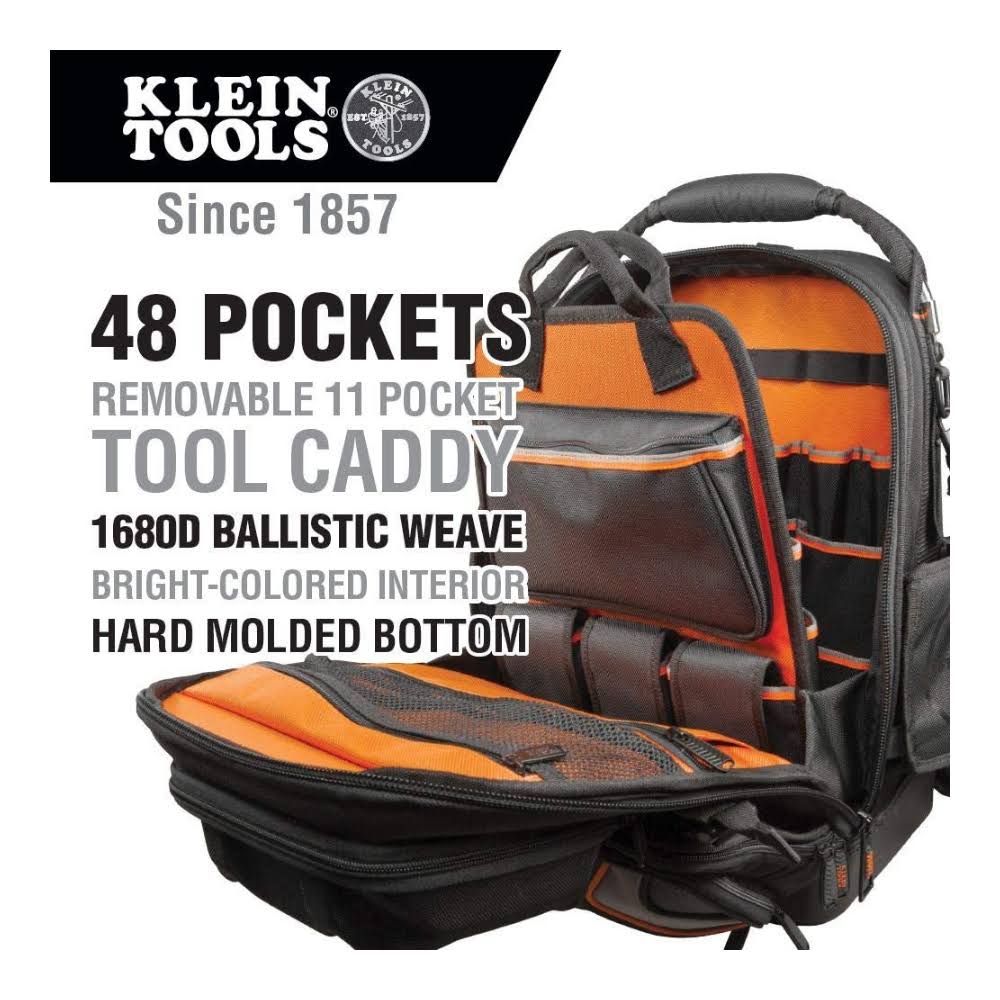Klein Tools 55485 Durable Electrician Tool Bag Backpack with 48 Pockets for Hand Tools, Waterproof