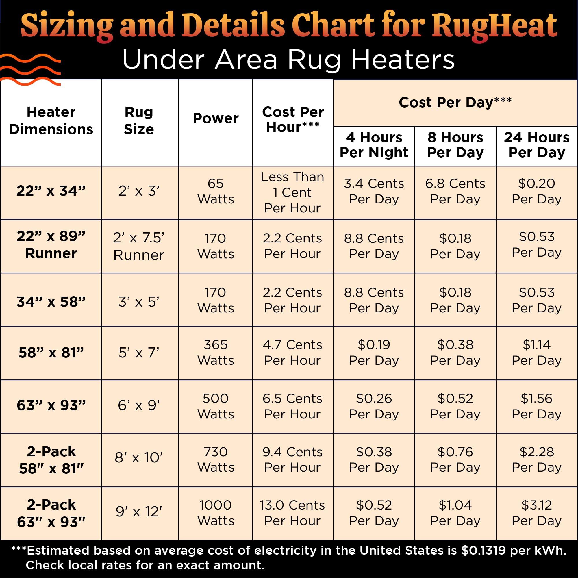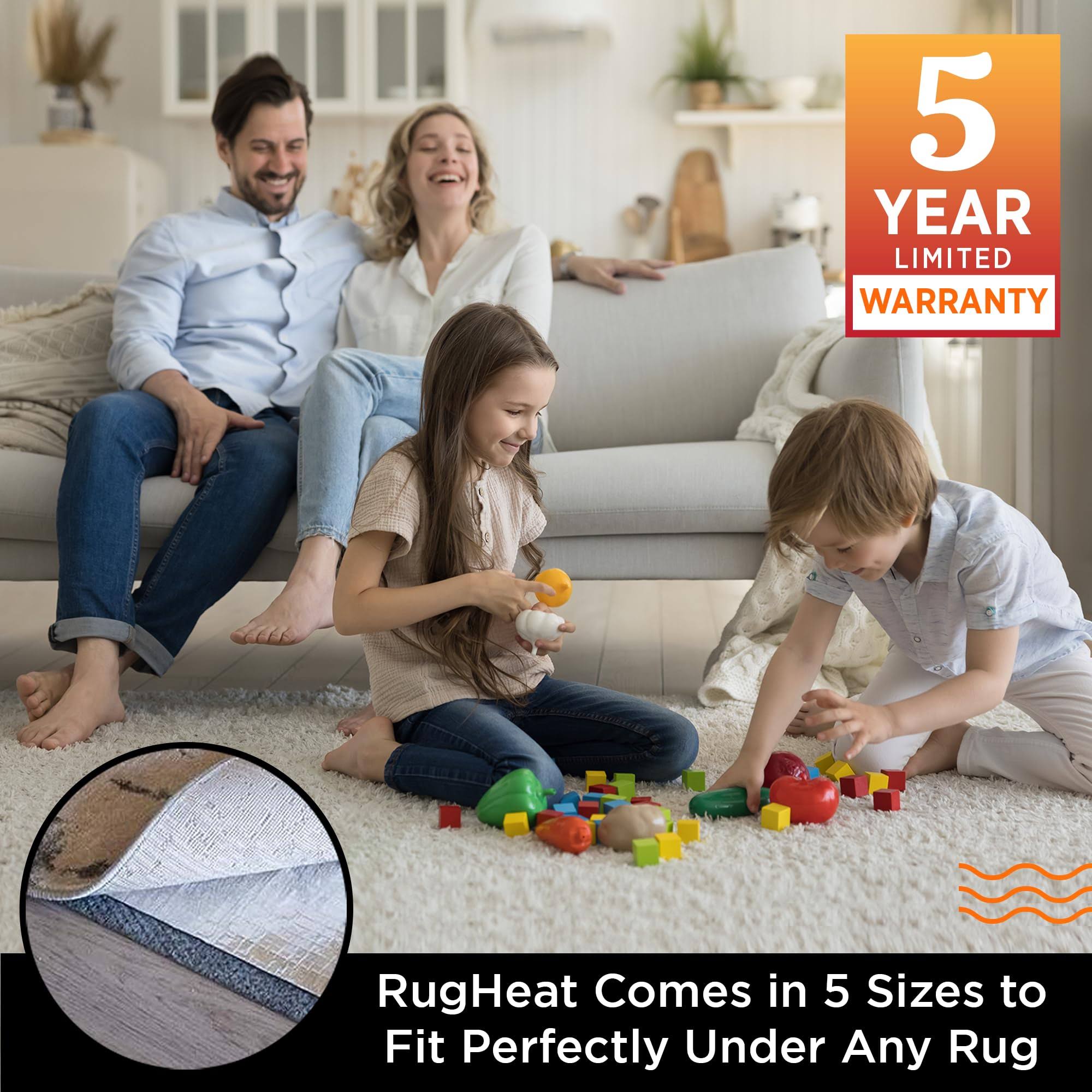 Rugheat Portable Heated Floor Mat, Large (58x81 inches) Fits Under A 5' x 7' Rug- Under-Rug Pad for Heated Rug, Electric Radiant Floor Heater for