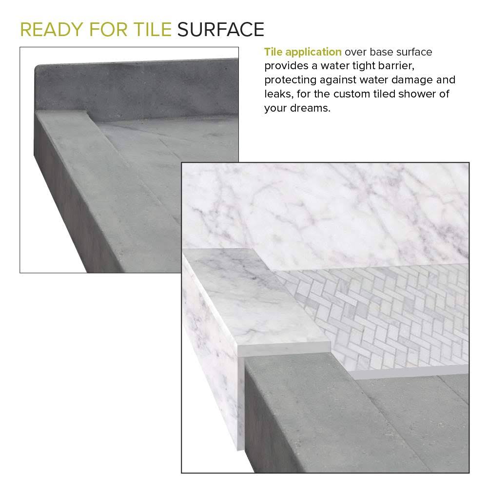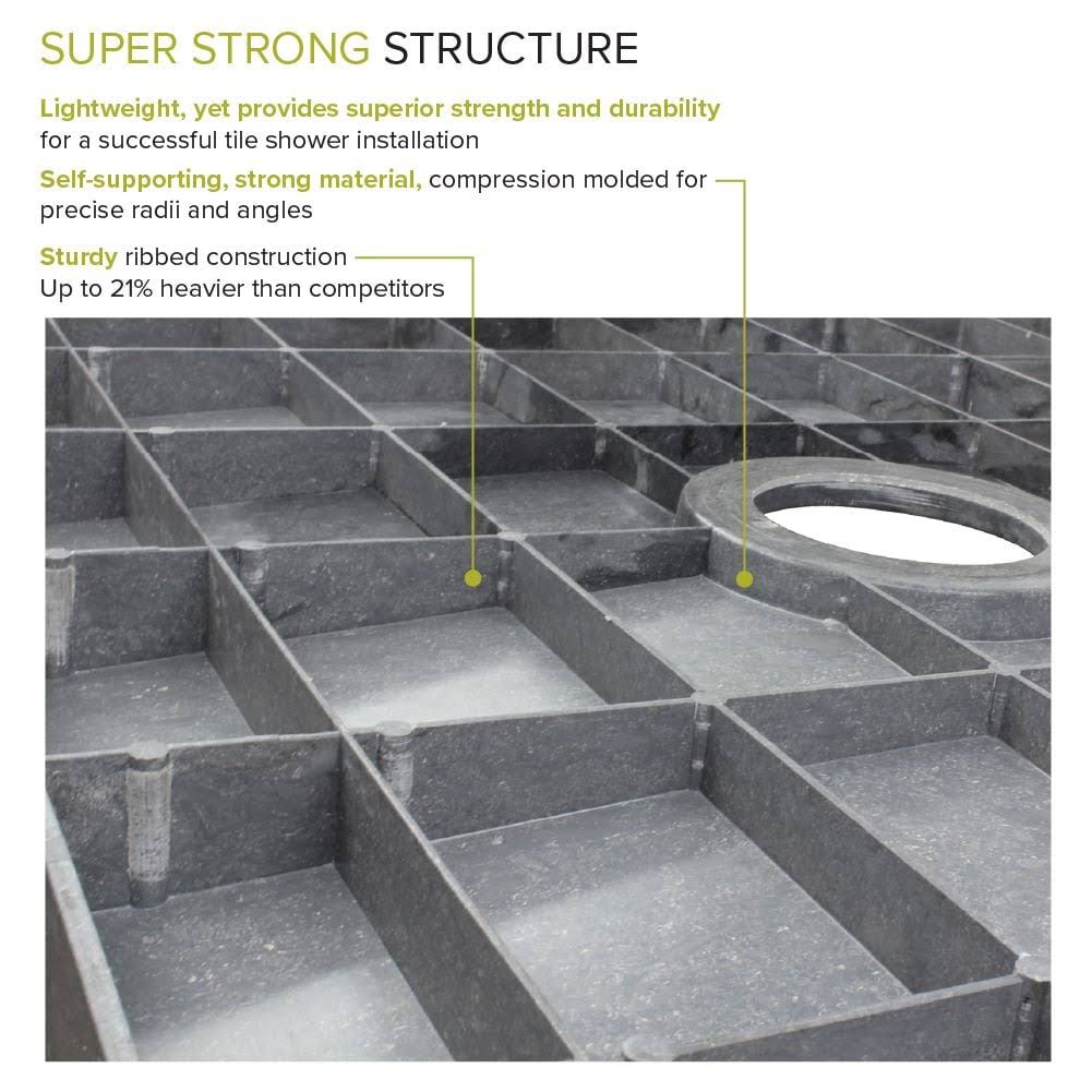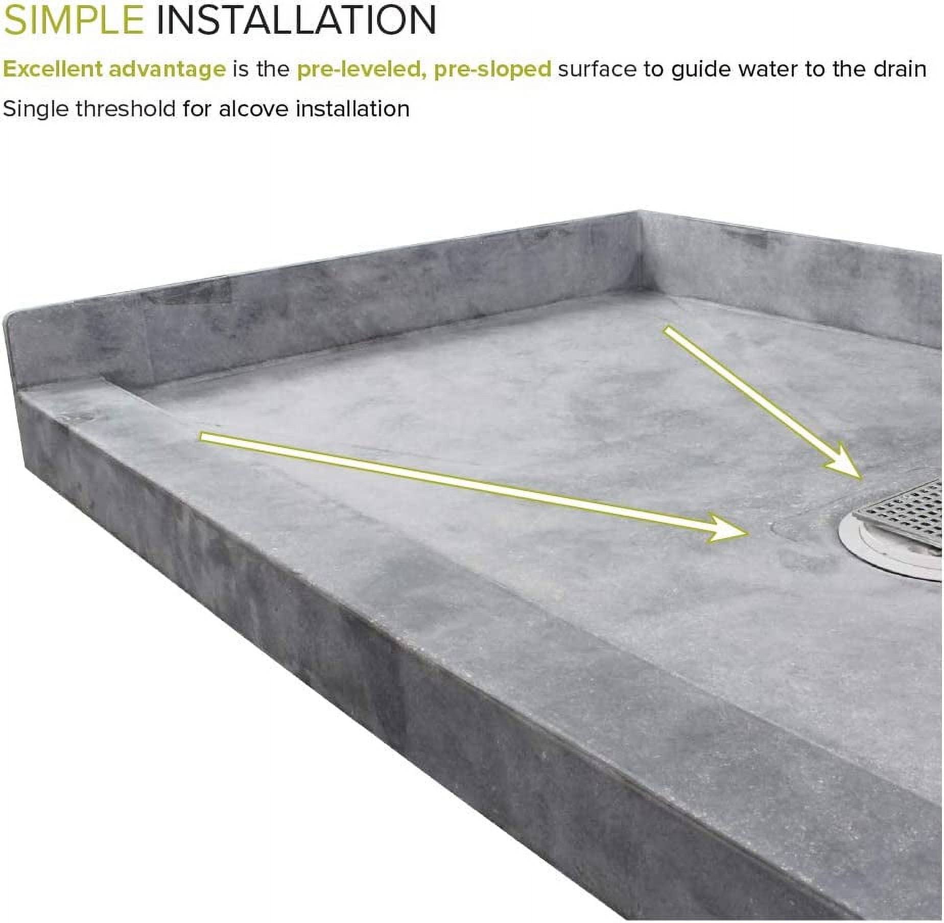 Transolid FTT6030C Ready to Tile 60-in L x 30-in W Shower Base with Center Drain, Dark Grey