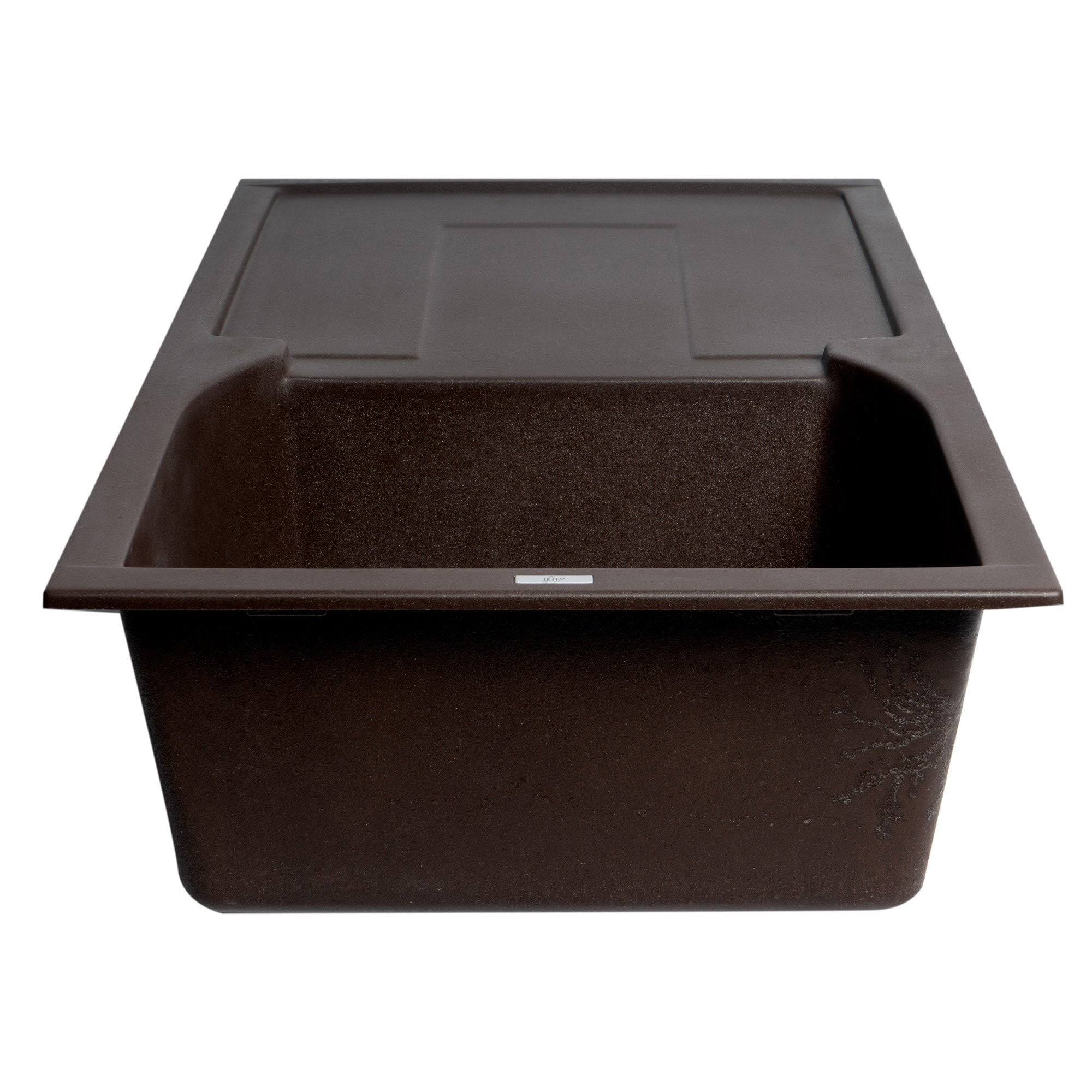 Alfi Brand AB1620DI-C Chocolate 34" Single Bowl Granite Composite Kitchen Sink with Drainboard