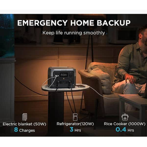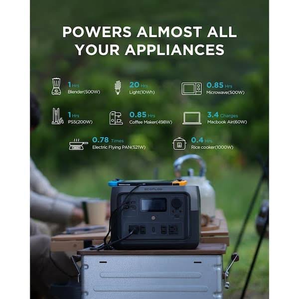EcoFlow 500W Output/1000W Peak Push-Button Start Solar Generator River 2 Max with 160W Solar Panel