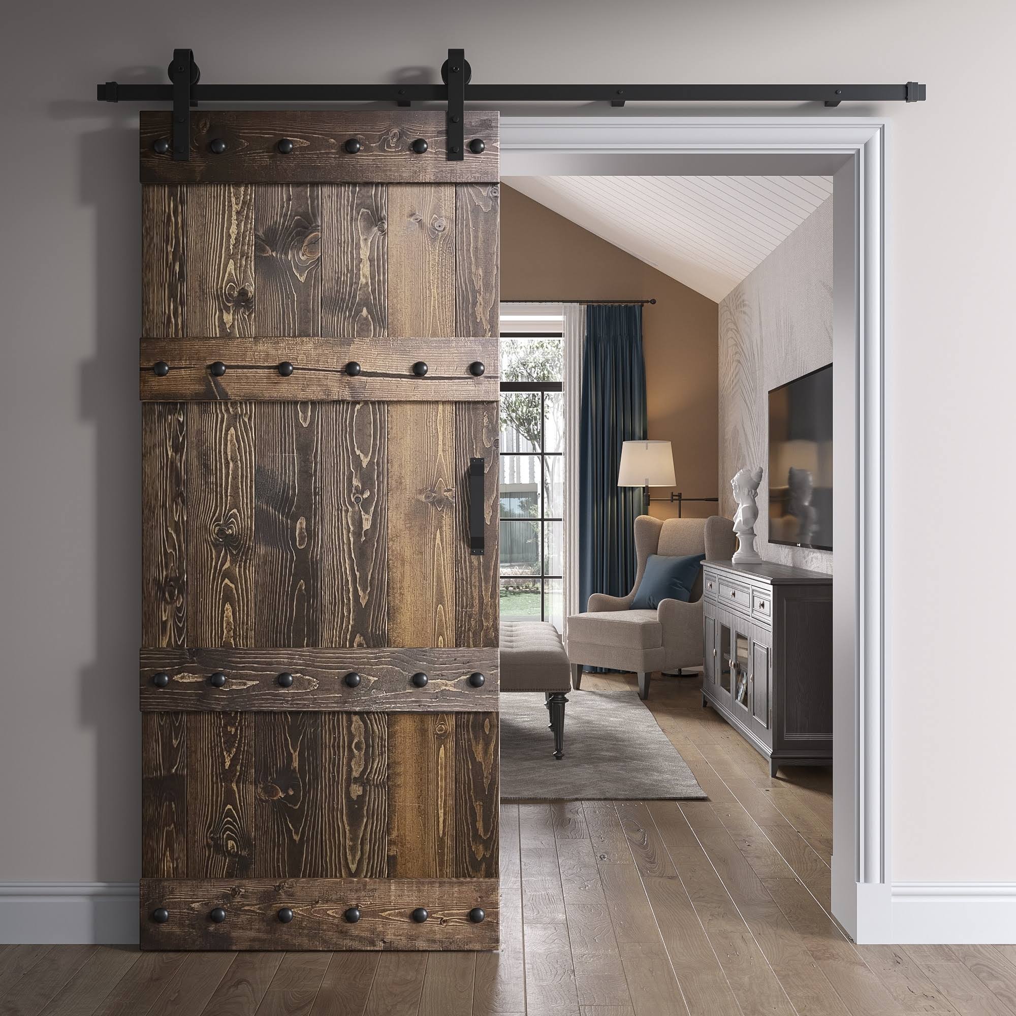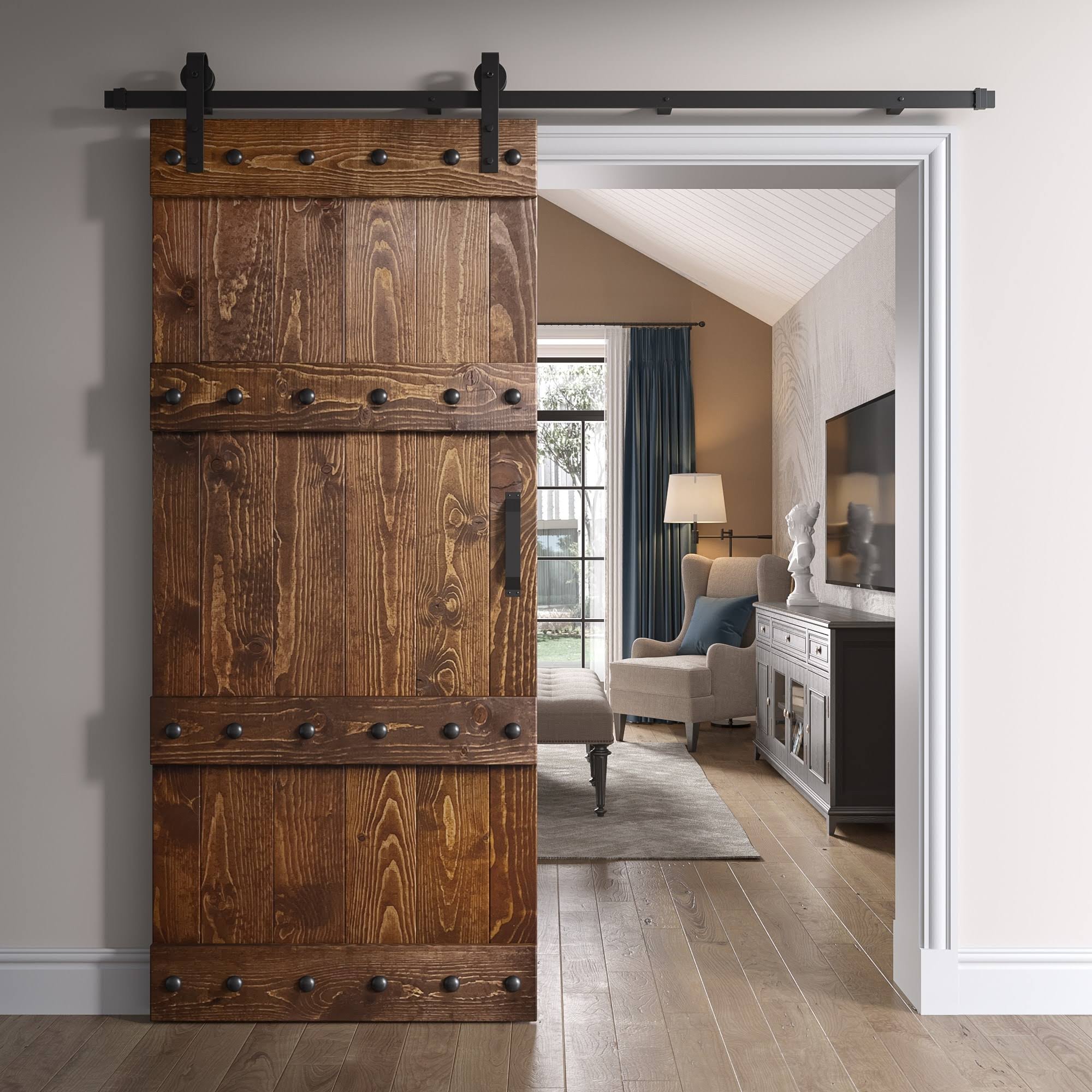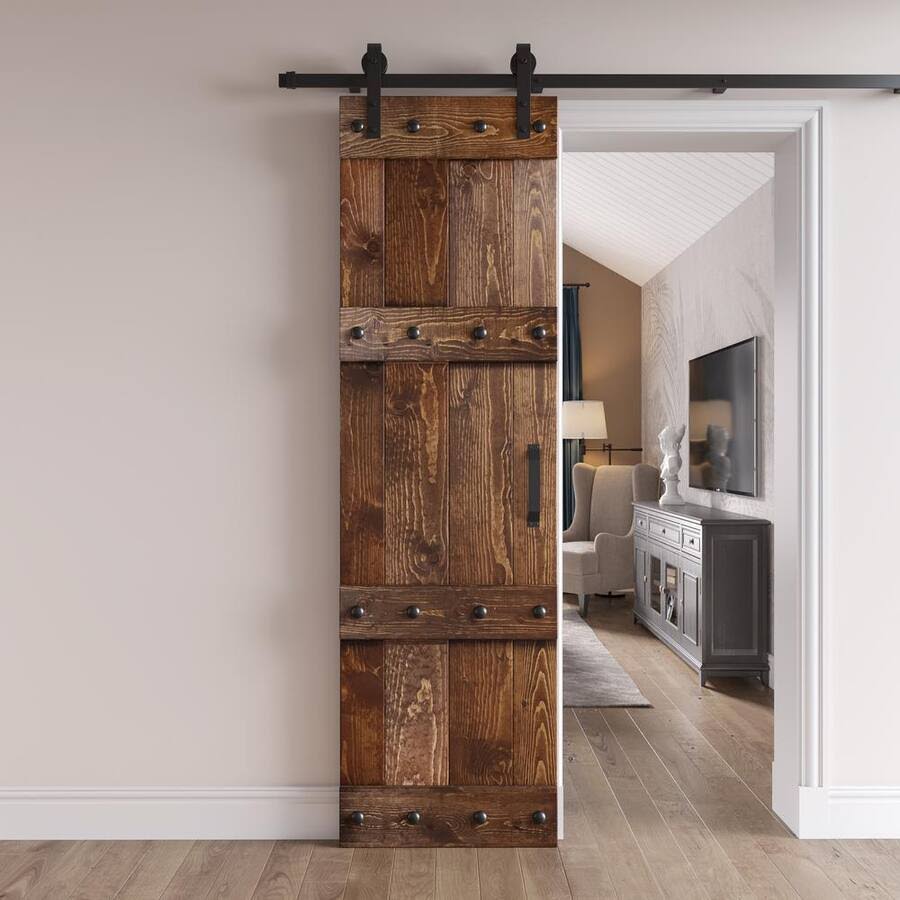 Coast Sequoia 36 in. x 84 in. Castle-Series Knotty Pine Wood Barn Door (kona Coffee)