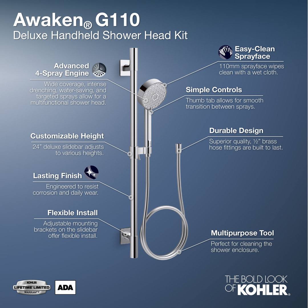 Kohler K-99242-G Awaken G110 1.75 GPM Deluxe Slidebar Kit- Polished Chrome