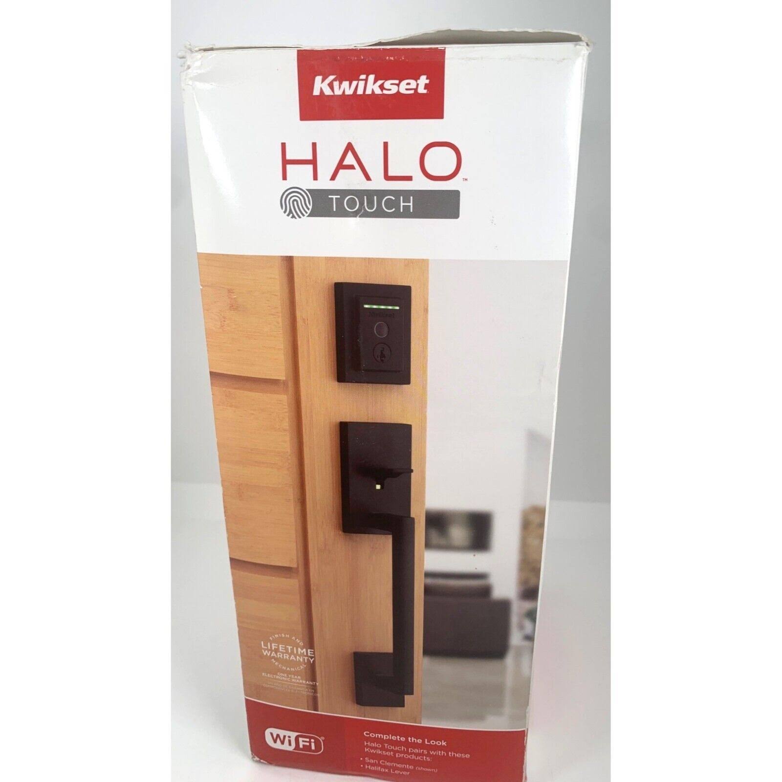 Kwikset Halo Touch Matte Black Contemporary Fingerprint WiFi Electronic Smart Lock Deadbolt Featuring SmartKey Security