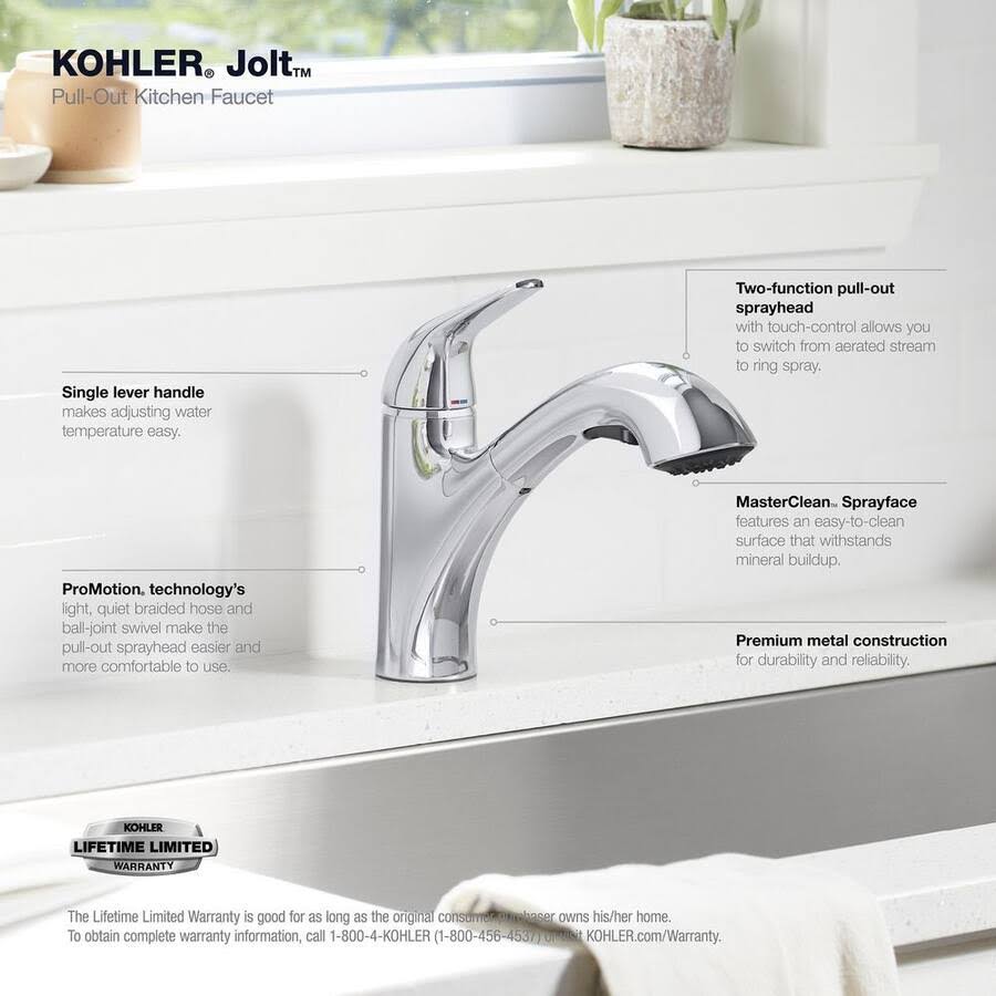 Kohler K-30612 Jolt Pull-Out Single-Handle Kitchen Sink Faucet- Polished Chrome