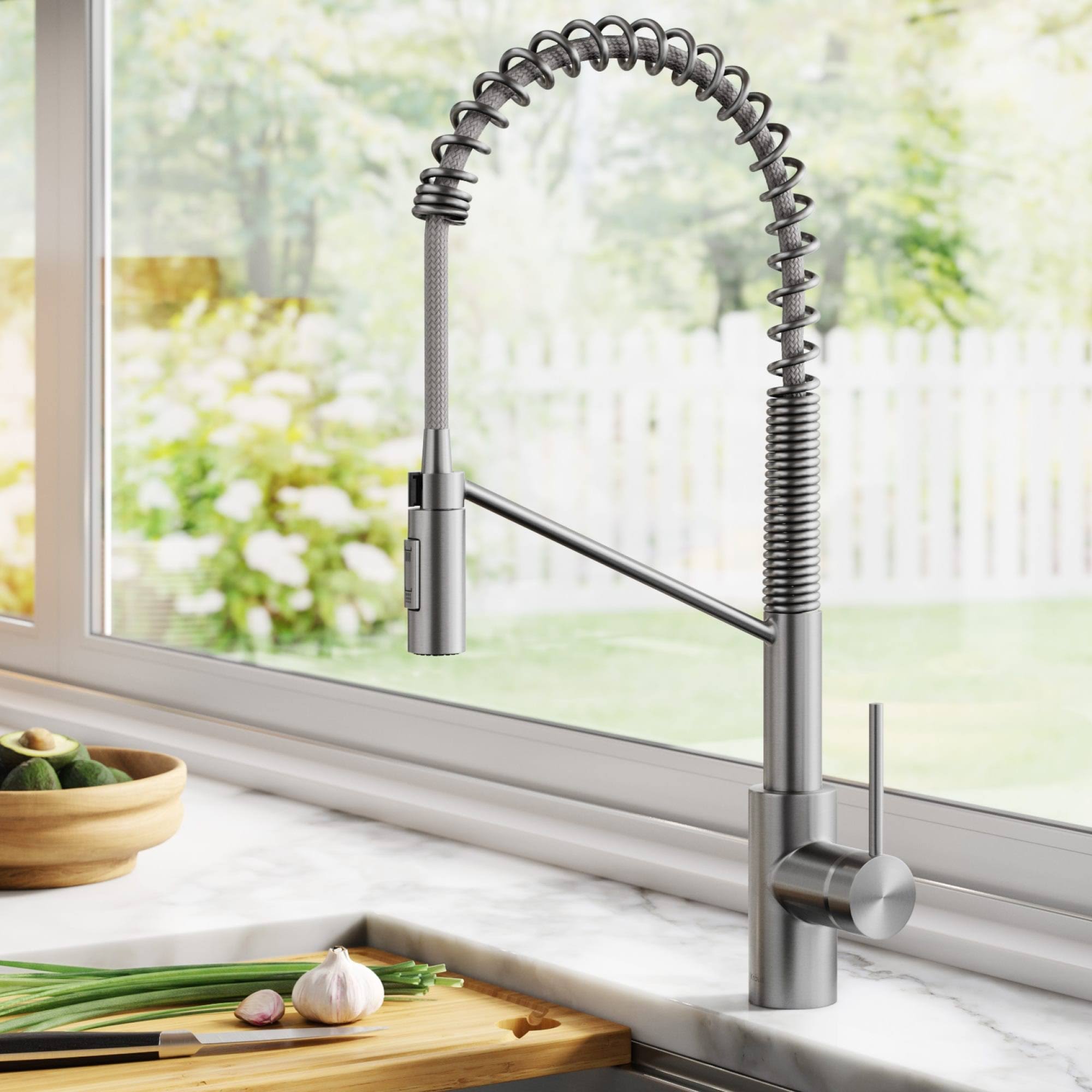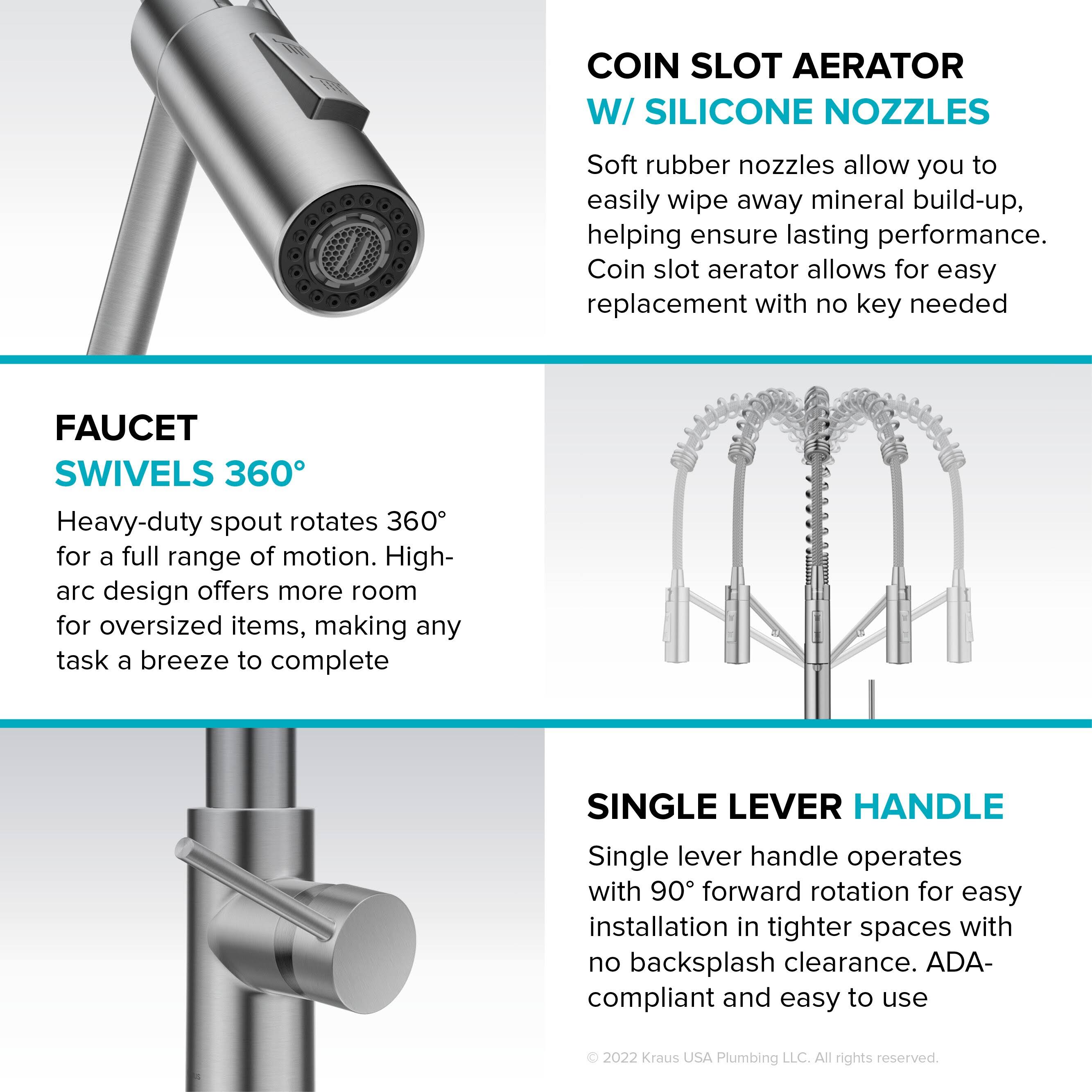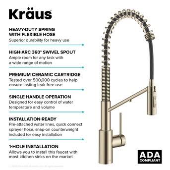 Kraus 20-5/8 inch Oletto 2-in-1 Commercial Style Pull-Down Single Handle Water Filter Kitchen Faucet, Spot-Free Stainless Steel KFF-2631SFS