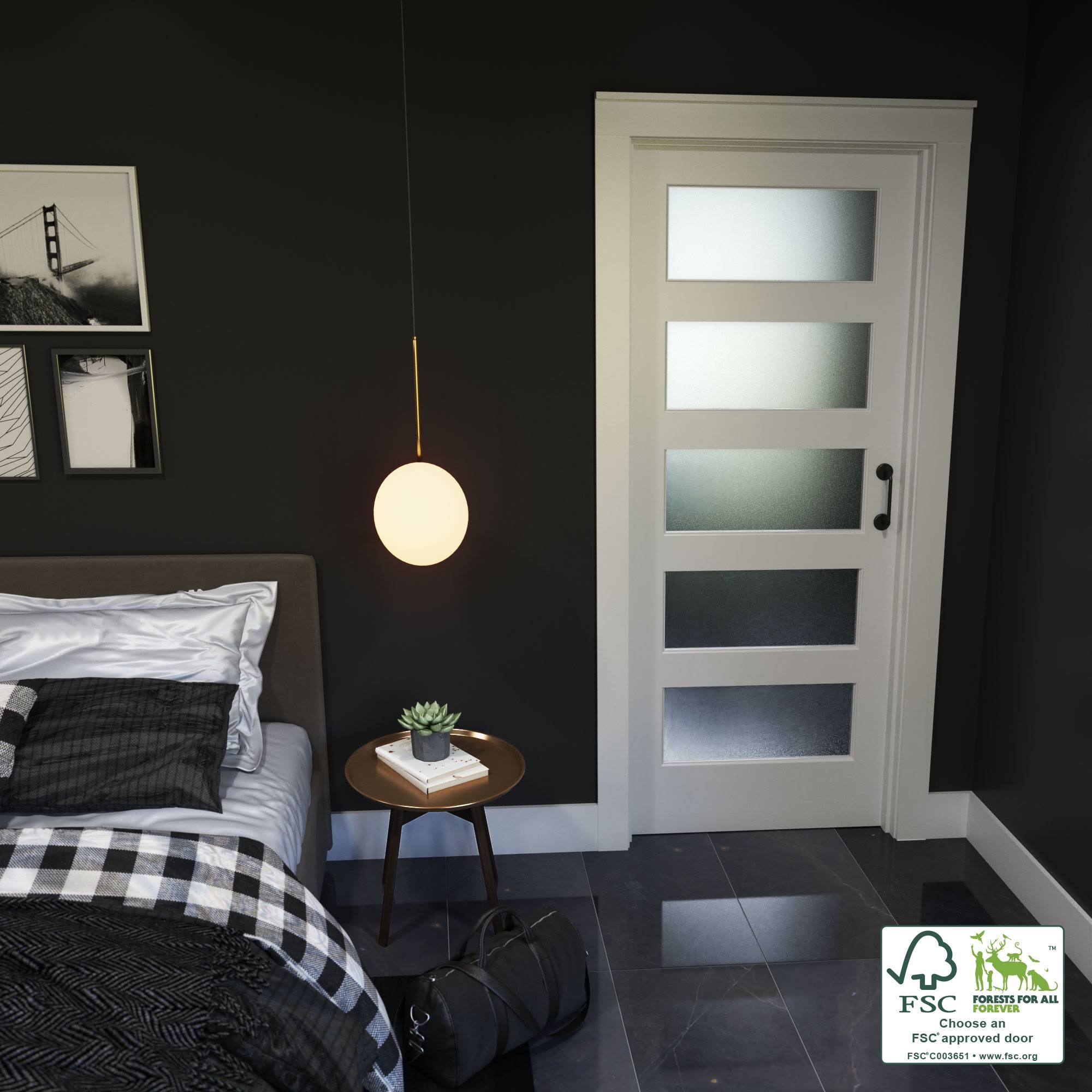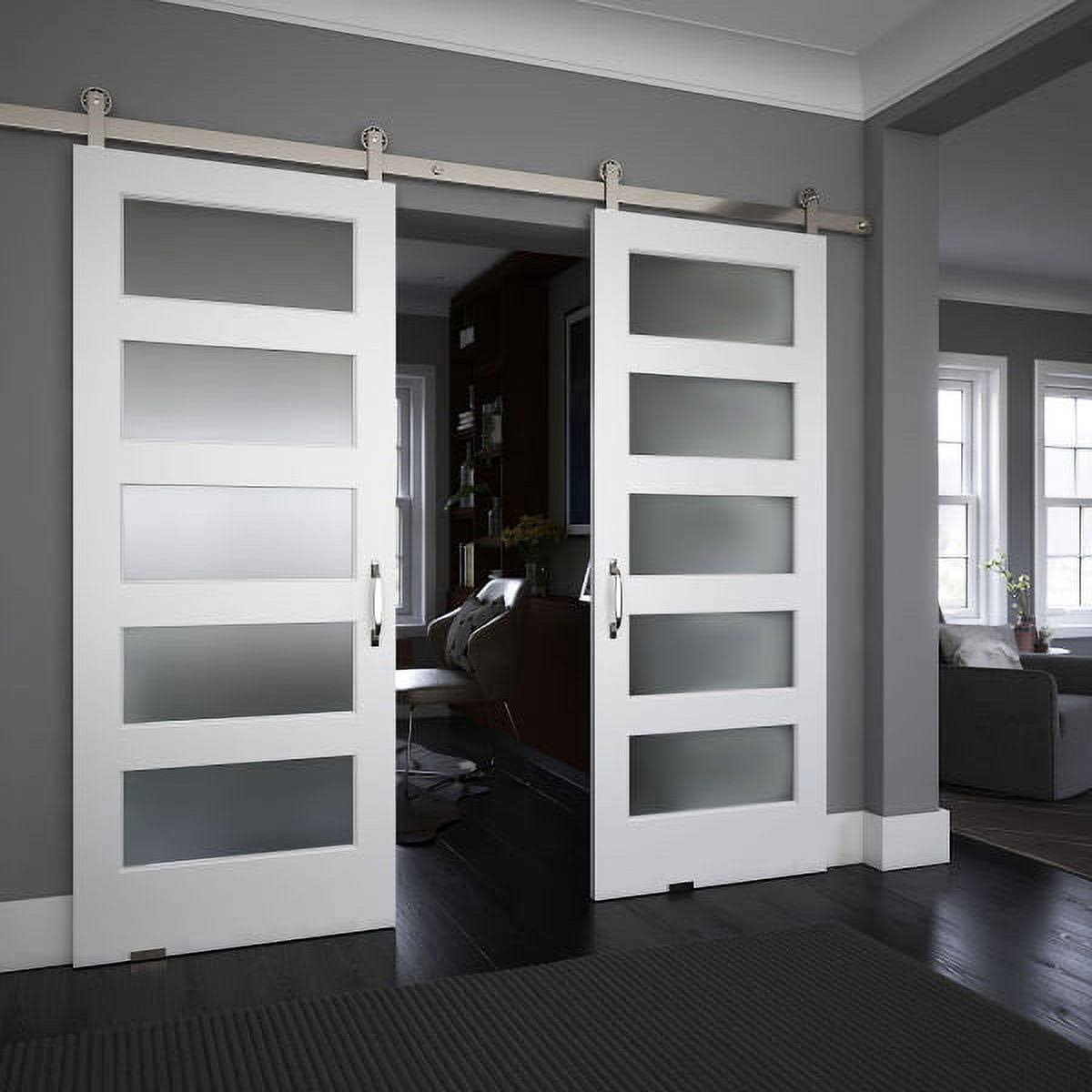 EightDoors 96" x 42" 5-Lite Frosted Glass White Prefinished Solid Wood Core Barn Door