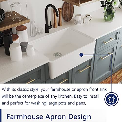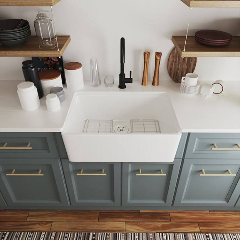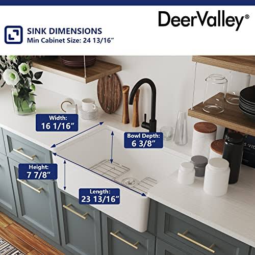 DeerValley DV-1K116 White 24 inch Farmhouse Sink with Bottom Grid and Strainer,Apron Sink Single Bowl Ceramic Sink,Small Kitchens Sinks