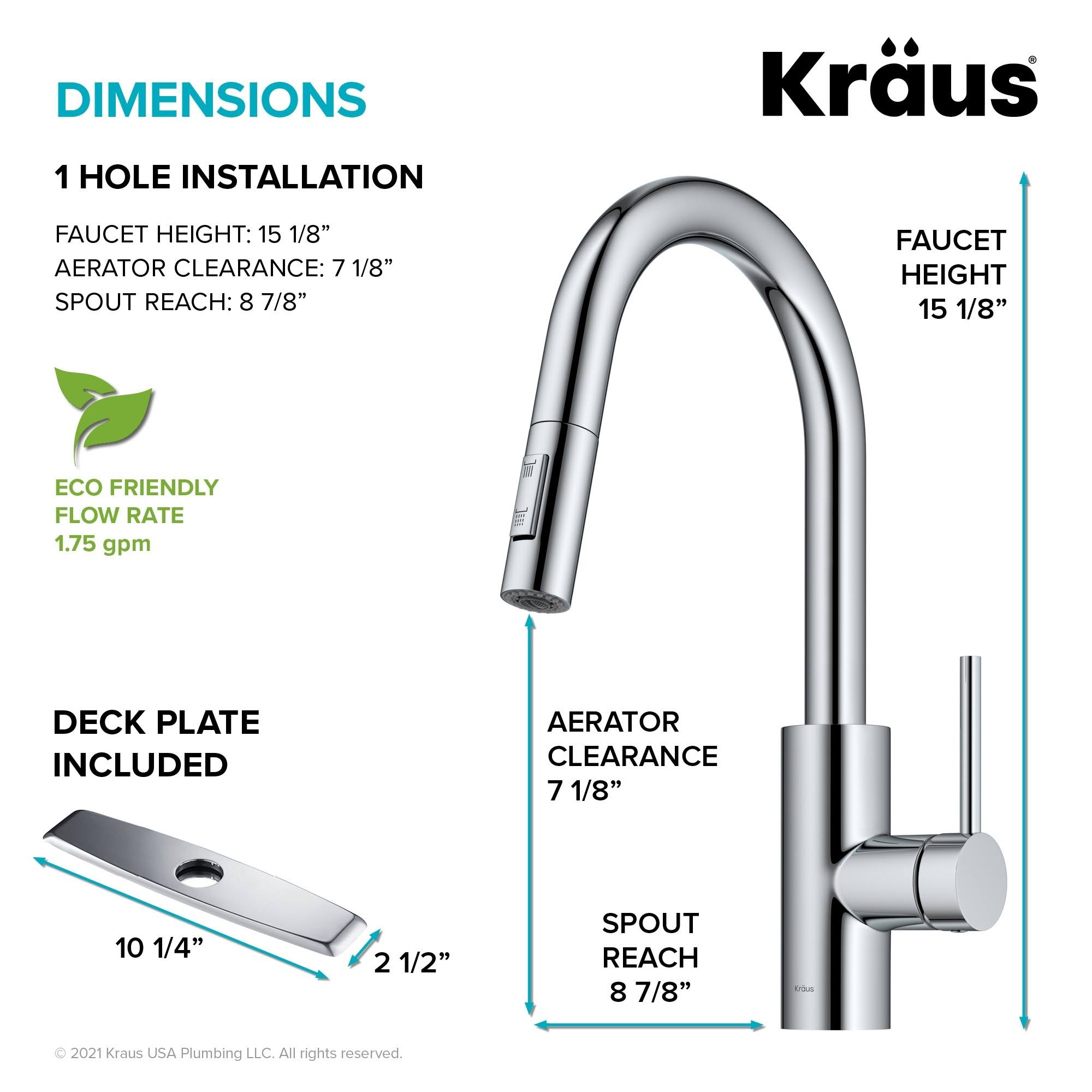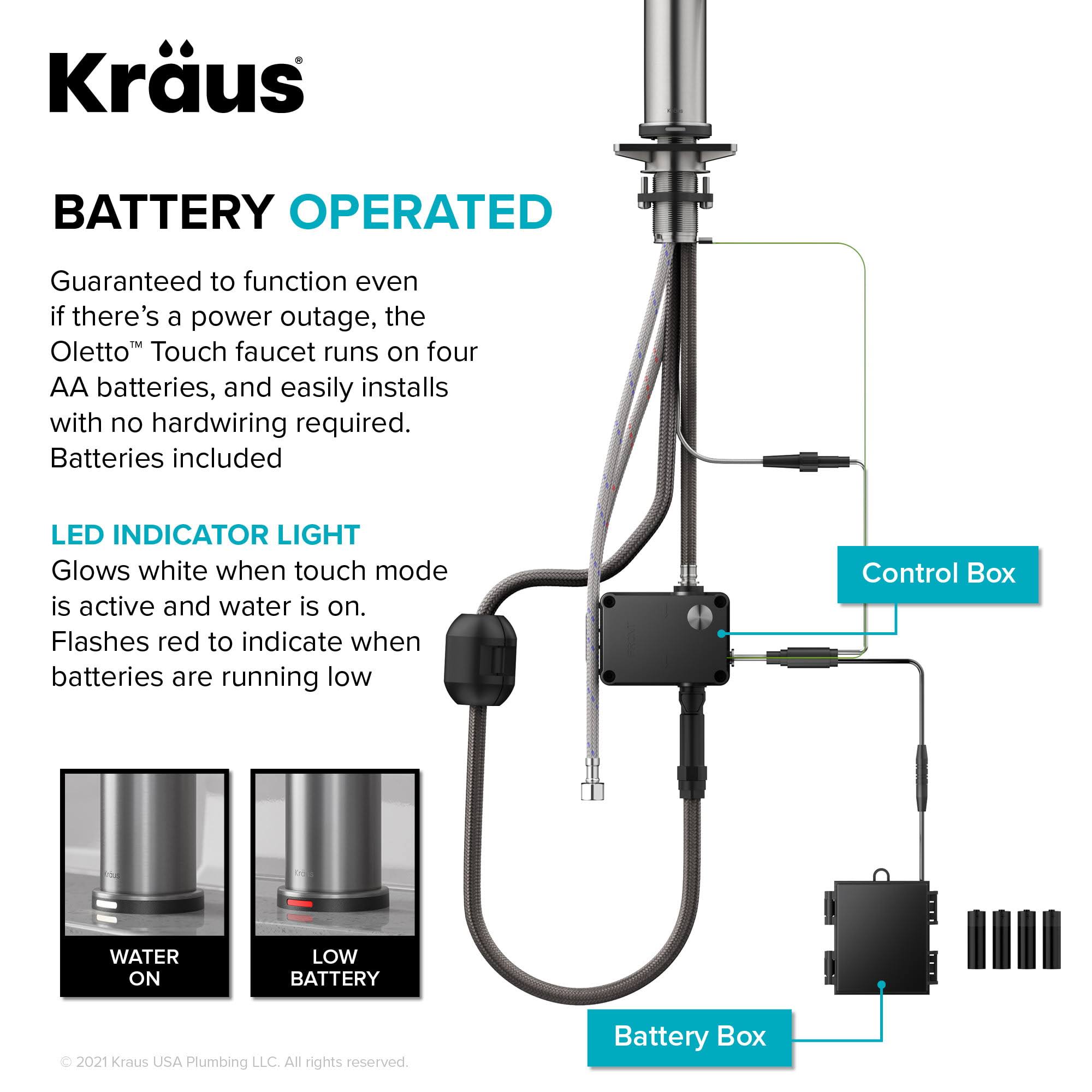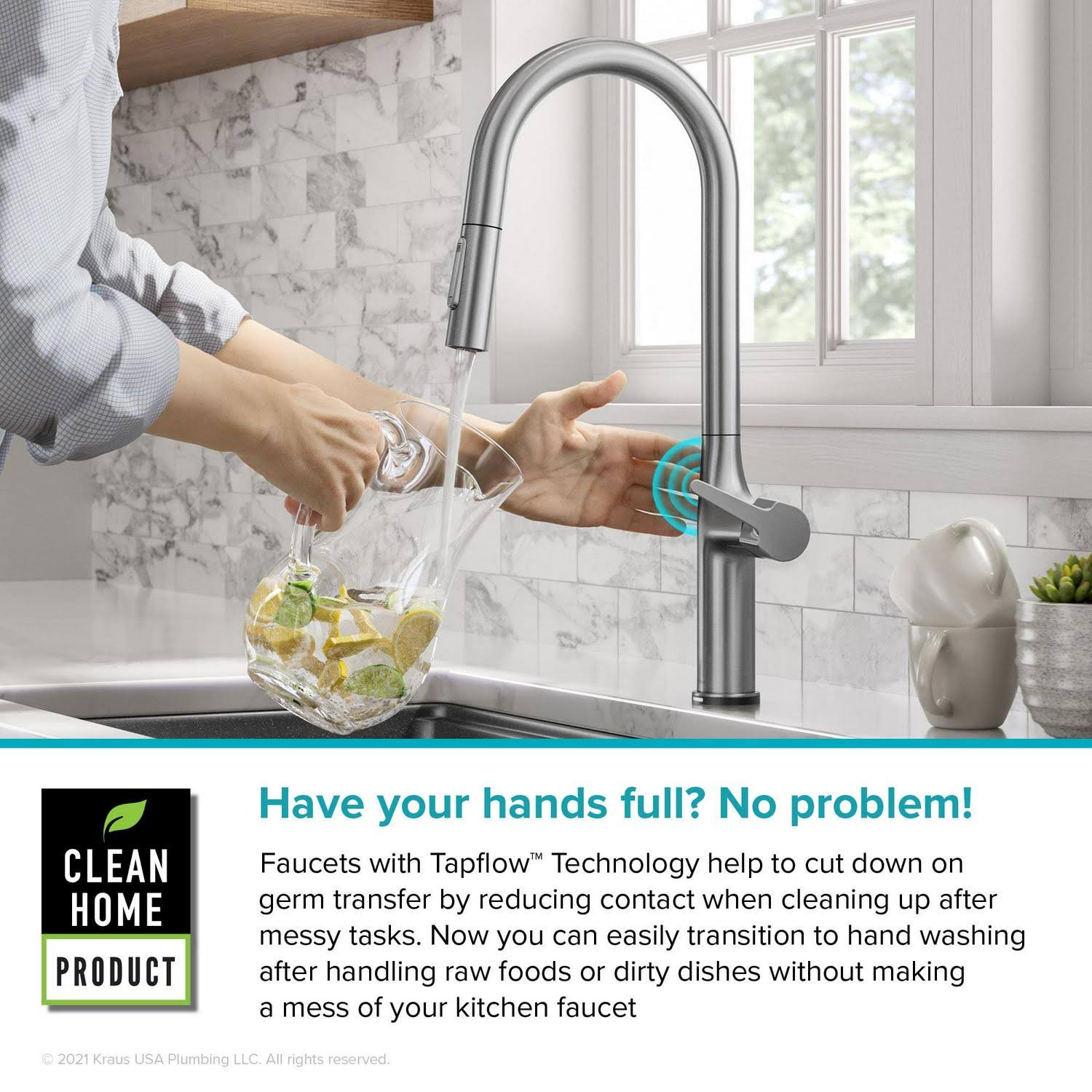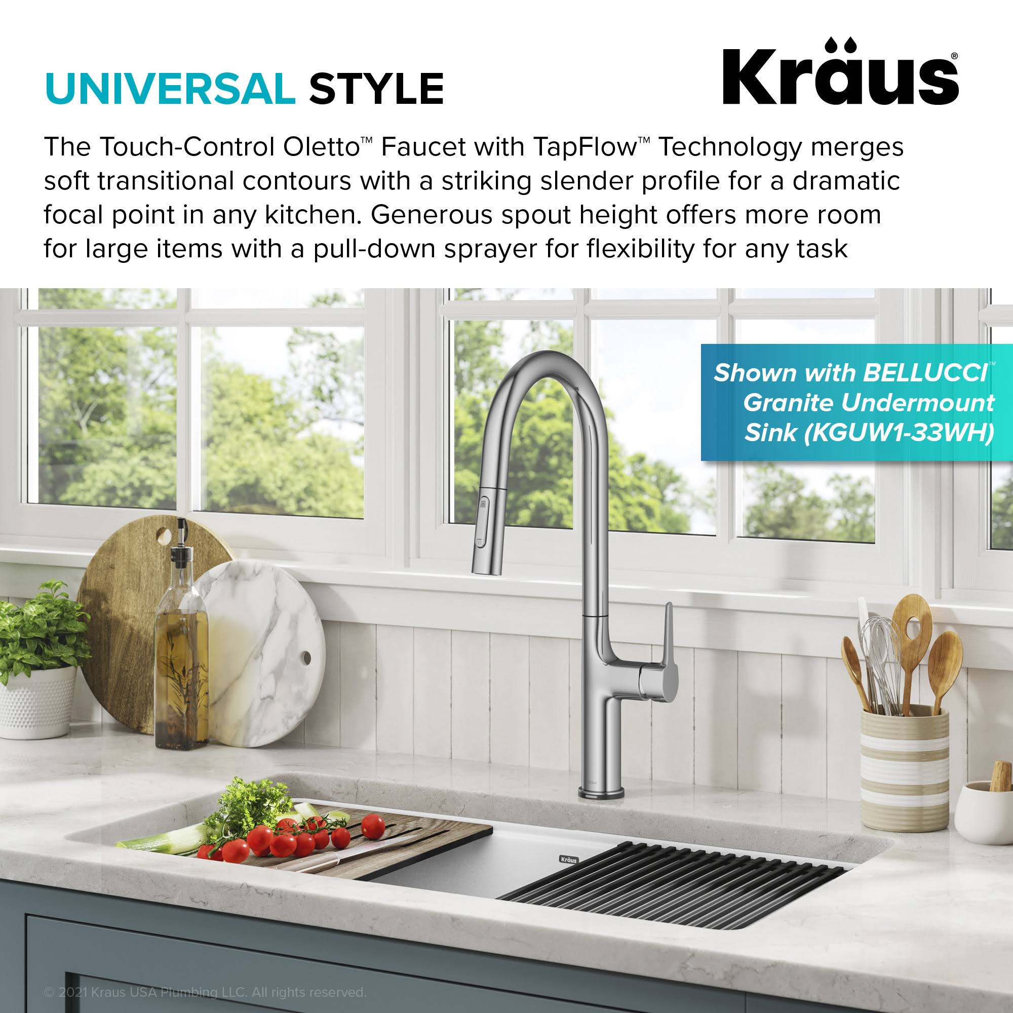 Kraus KTF-3101CH Oletto Tall Modern Single-Handle Touch Kitchen Sink Faucet with Pull Down Sprayer, Chrome