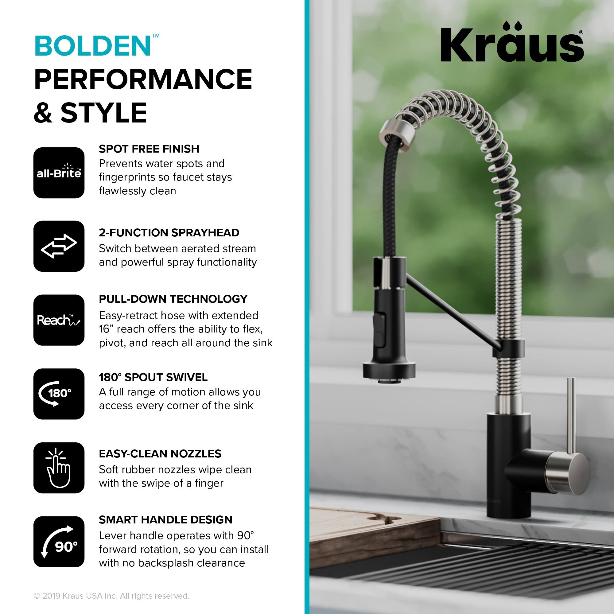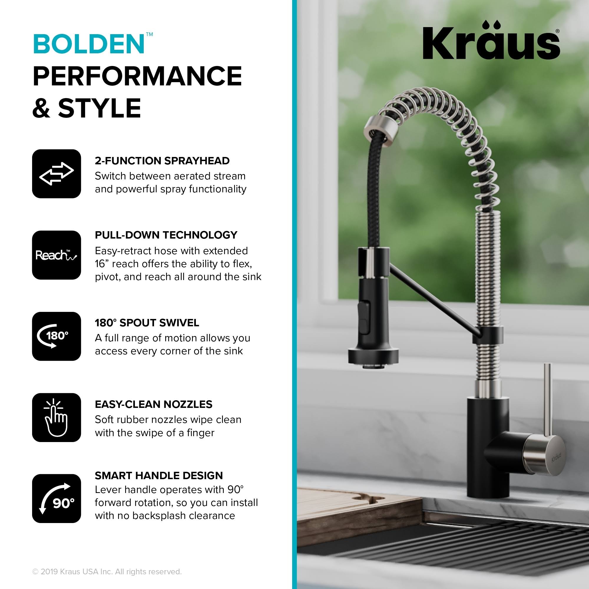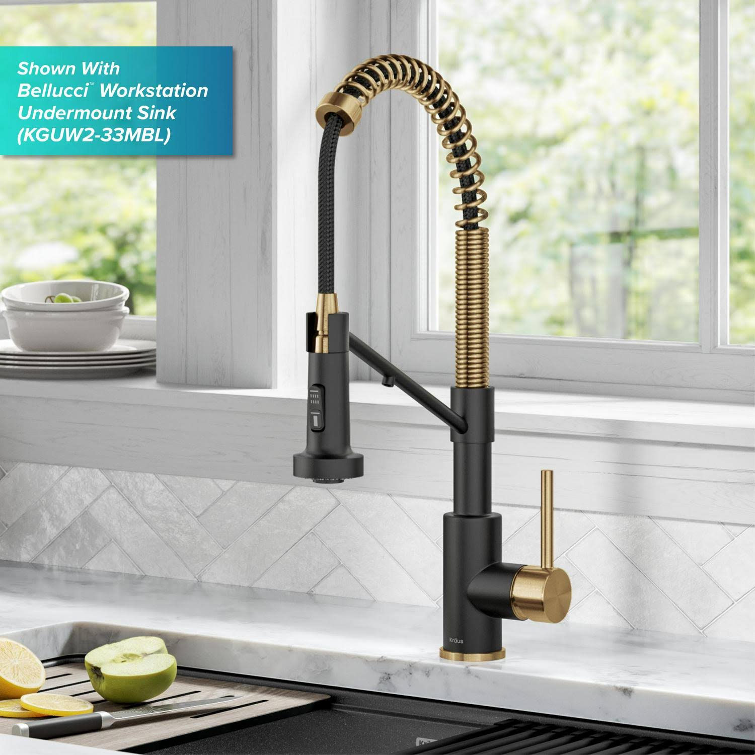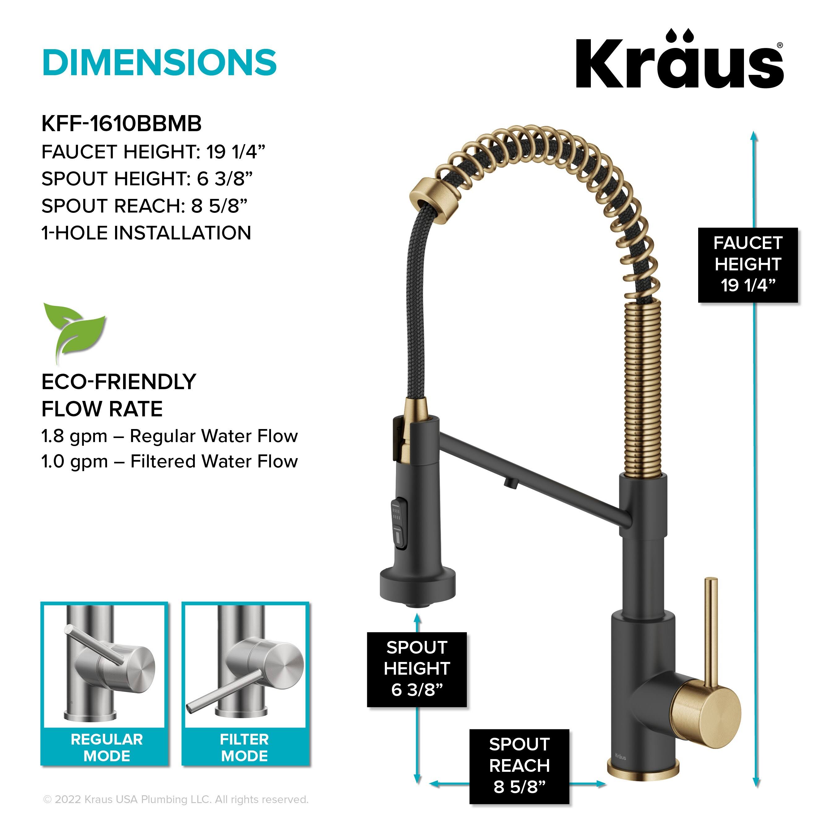 Kraus KFF-1610BBMB Bolden 2-in-1 Commercial Style Pull-Down Single Handle Water Filter Kitchen Faucet for Water Filtration System Brushed Brass & Matt