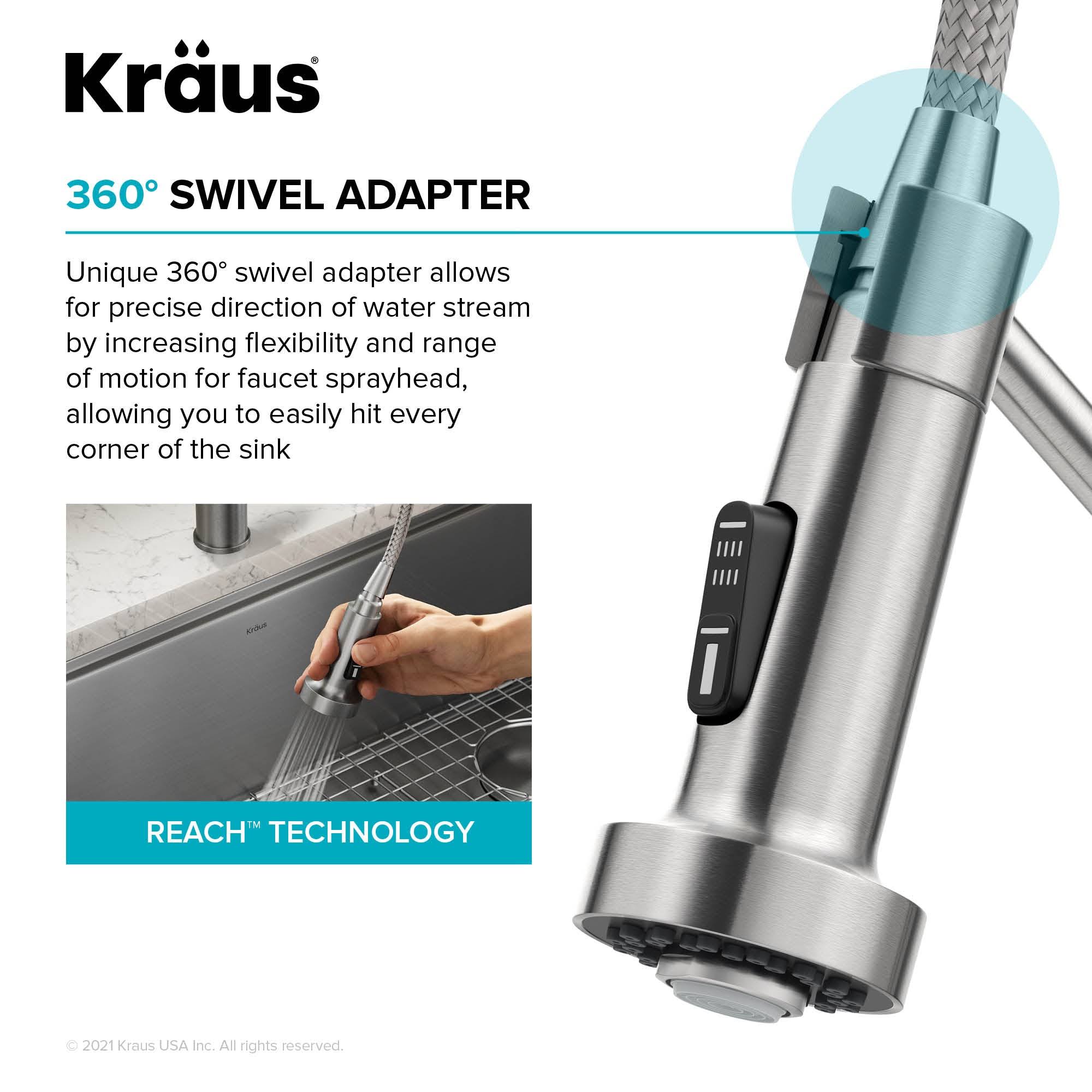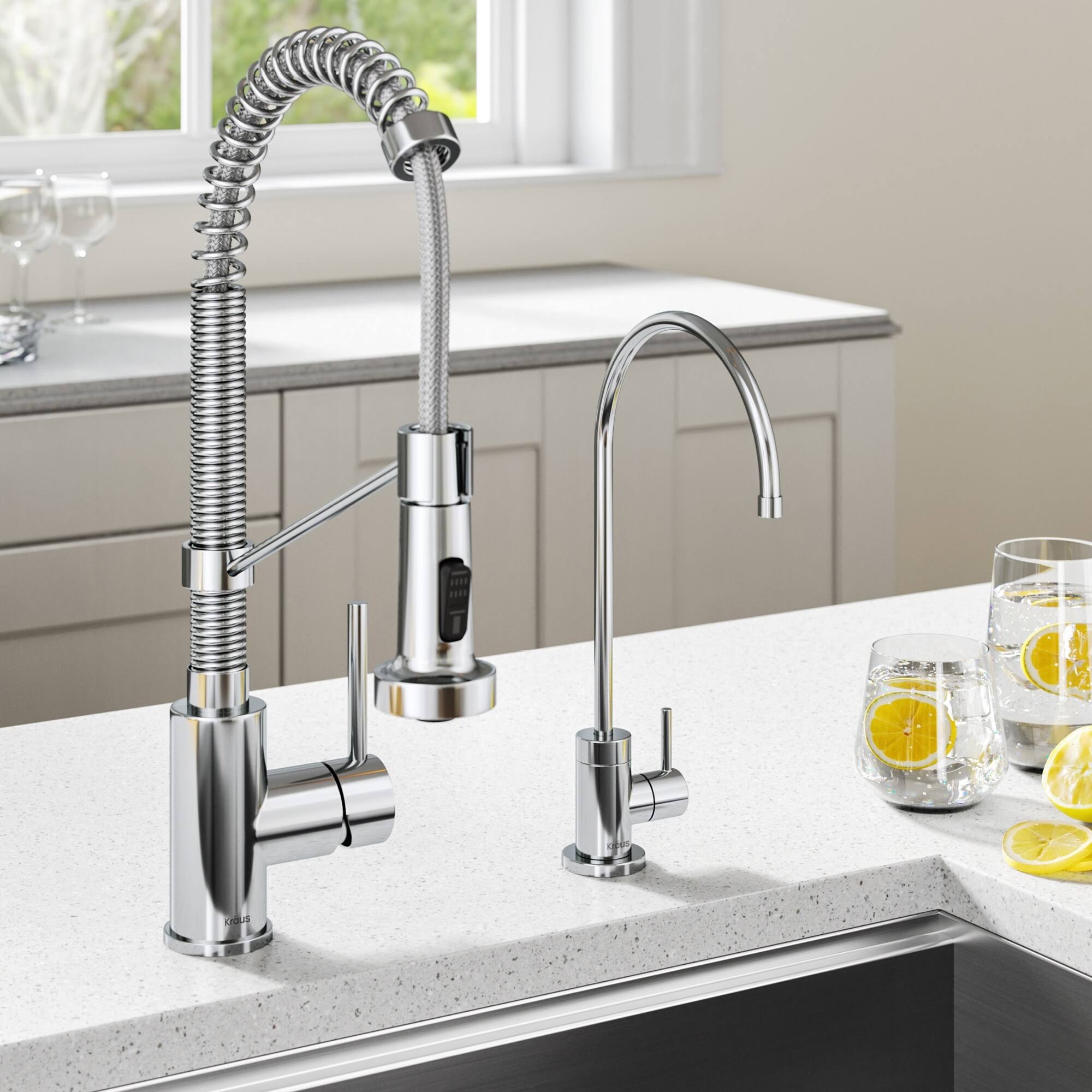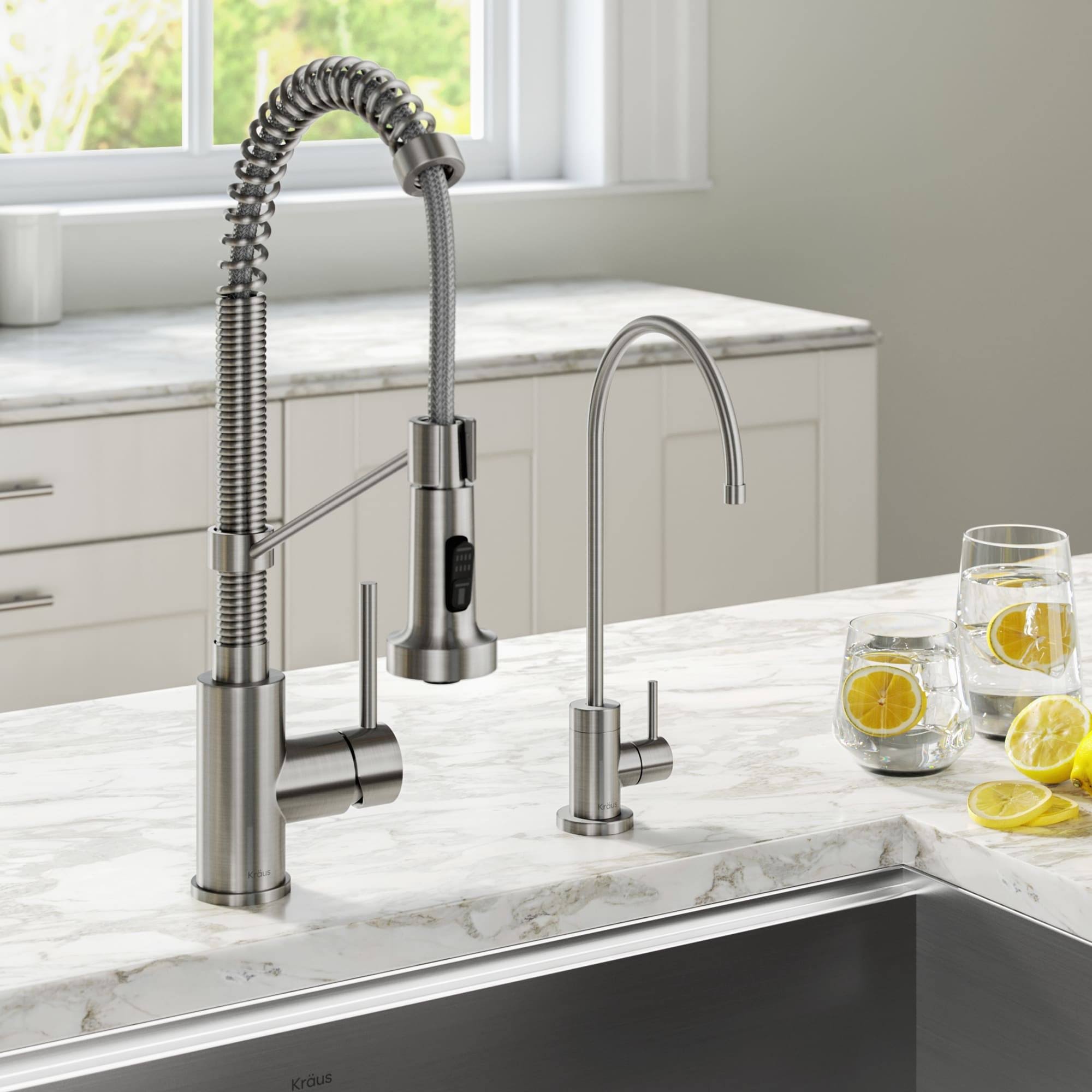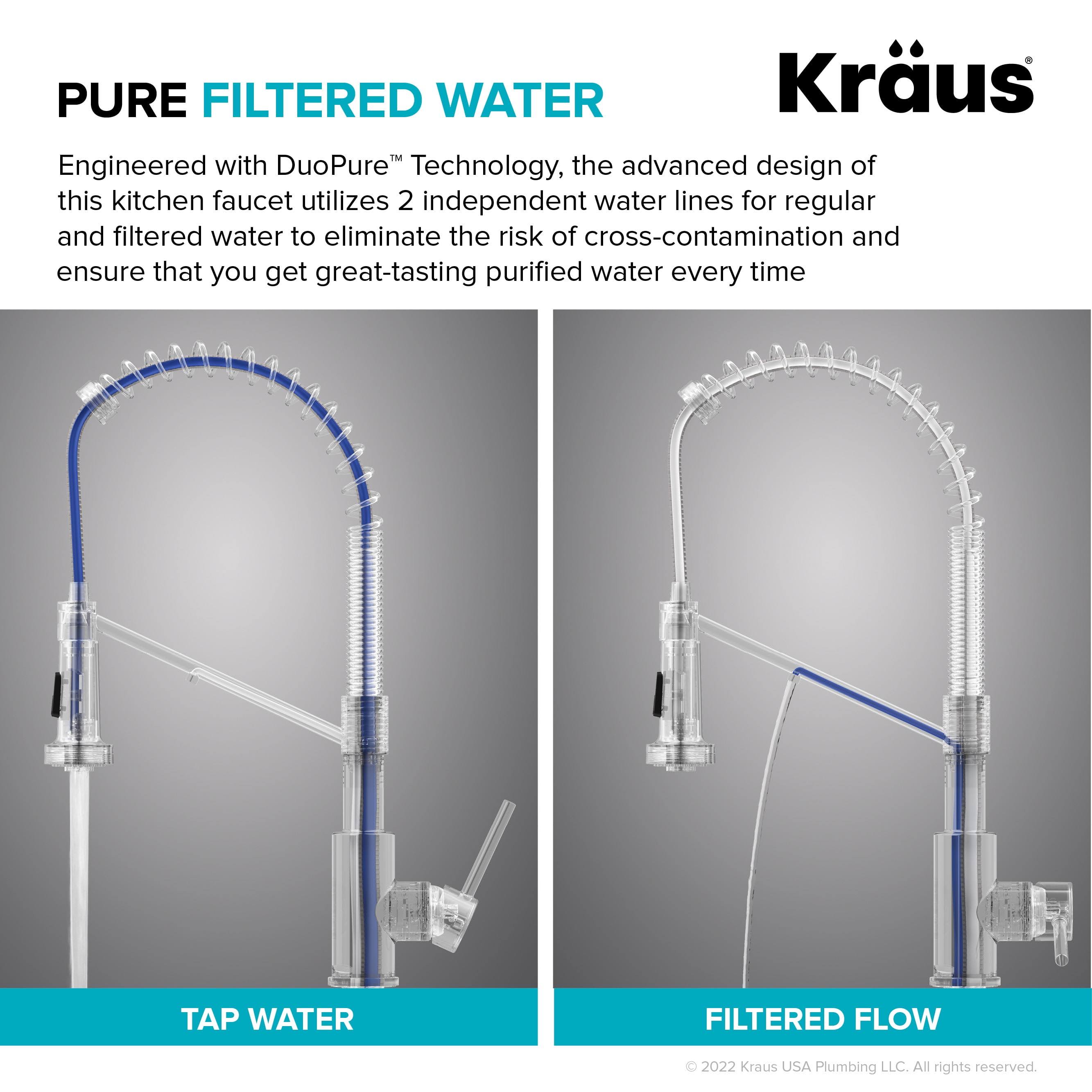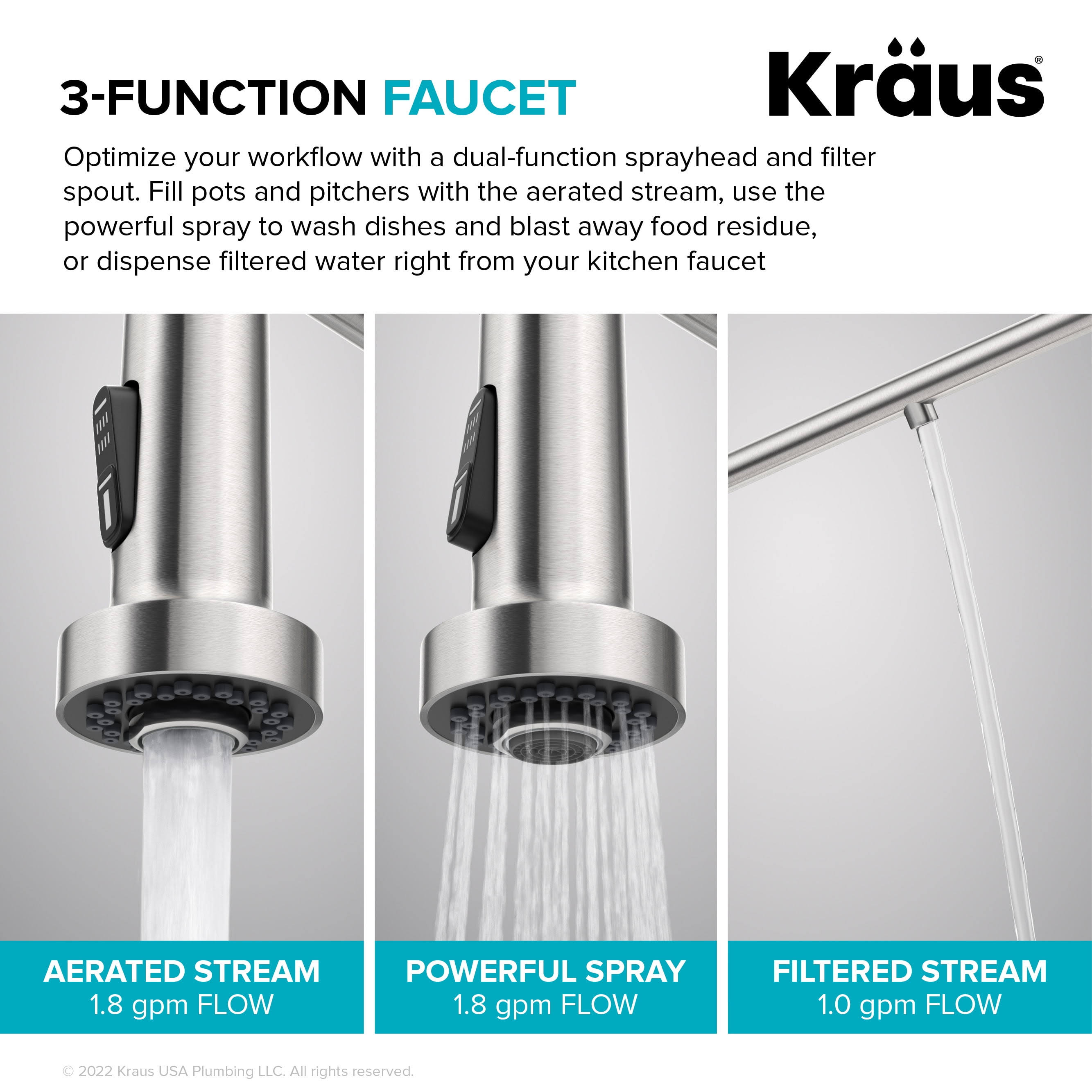 Kraus KFF-1610BB Bolden 2-in-1 Commercial Style Pull-Down Single Handle Water Filter Kitchen Faucet for Water Filtration System, Brushed Brass