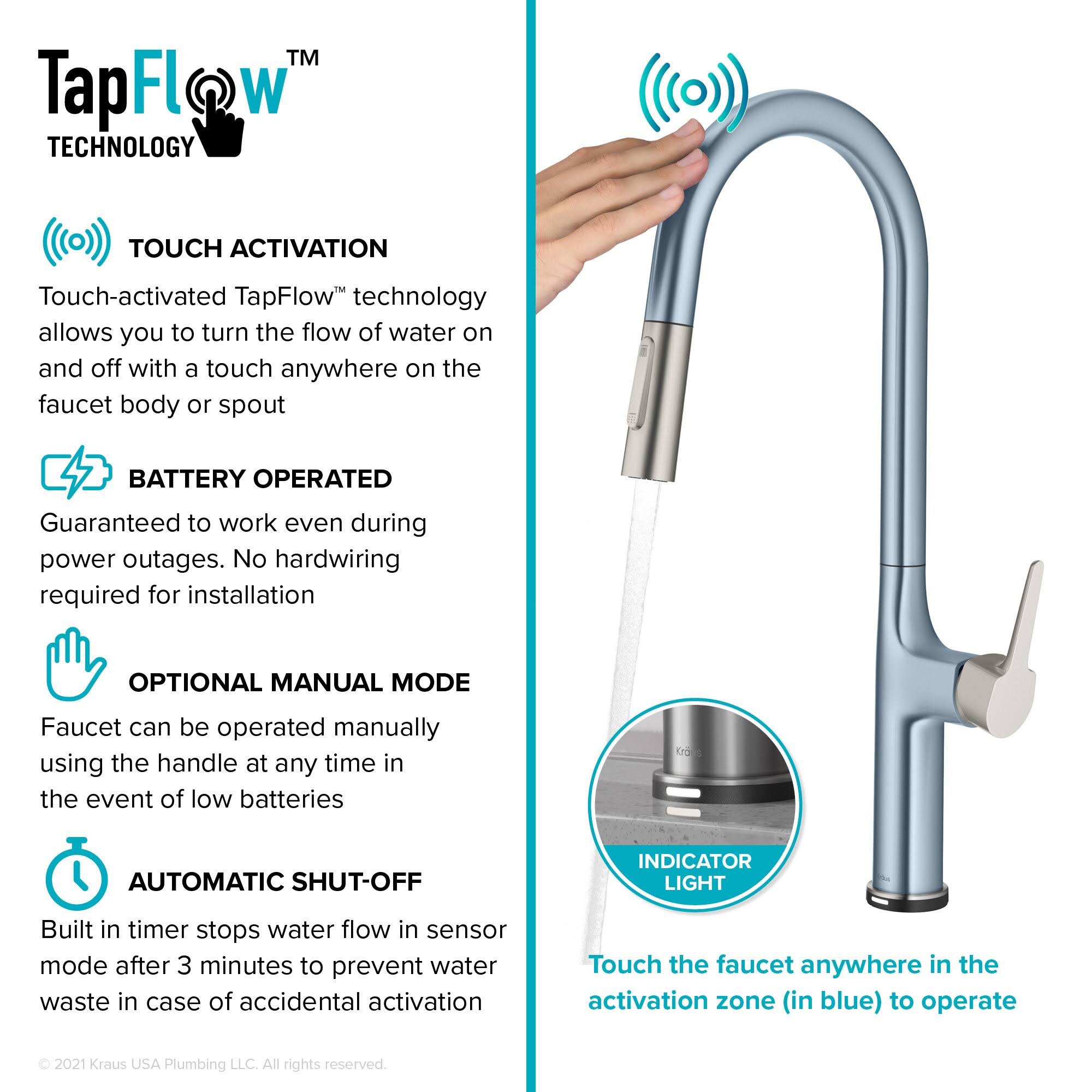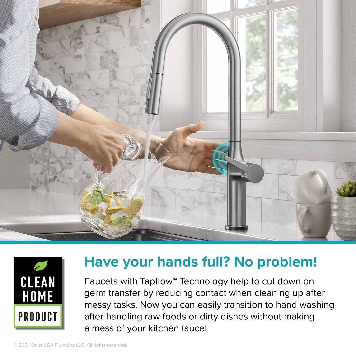 Kraus KTF-3101MB Oletto Tall Modern Single-Handle Touch Kitchen Sink Faucet with Pull Down Sprayer, Matte Black
