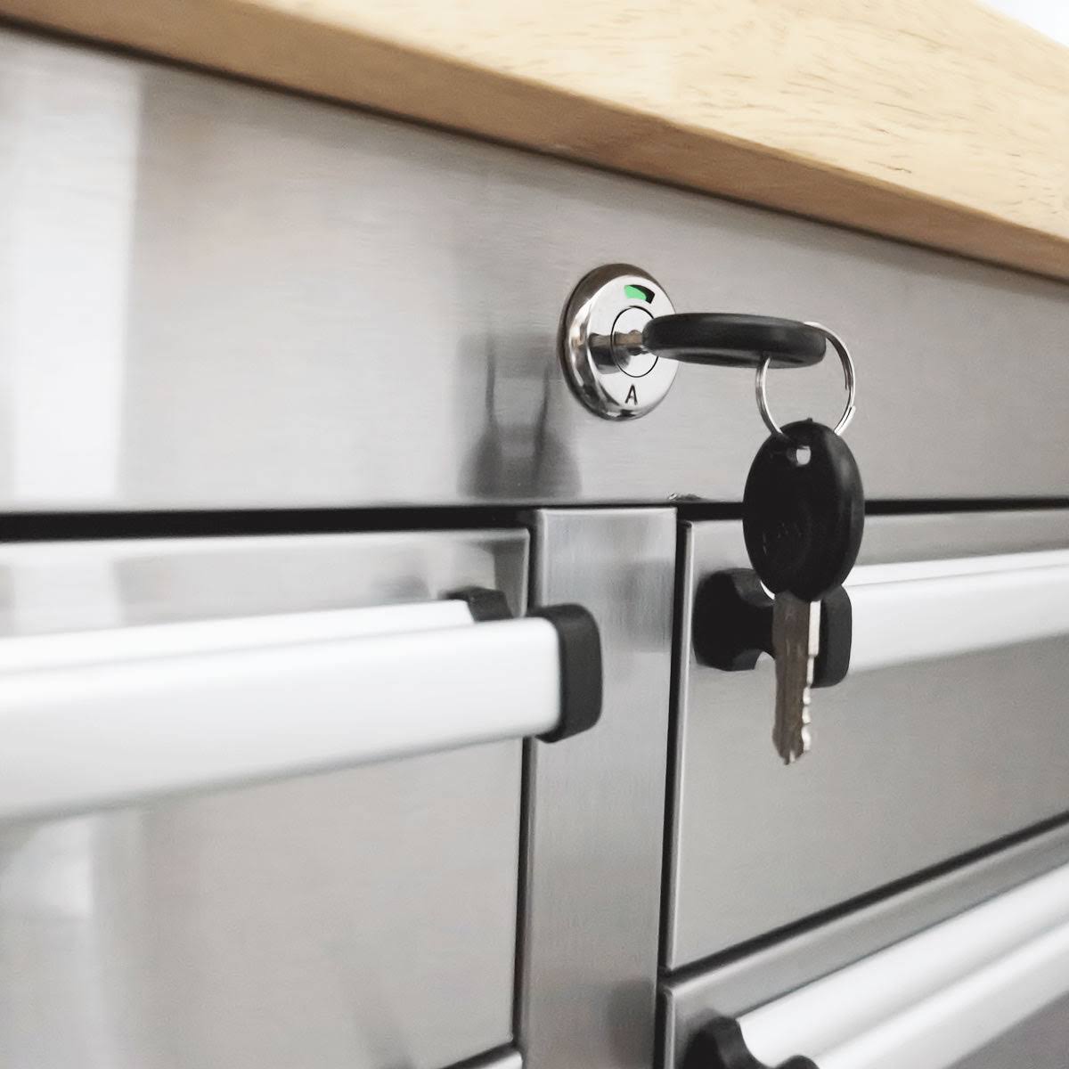 TMG Industrial 72" Stainless Steel Rolling Workbench, Rubberwood Tabletop, 15 Lockable Drawers, Locking Wheels, TMG-WB7215S, Normal Package