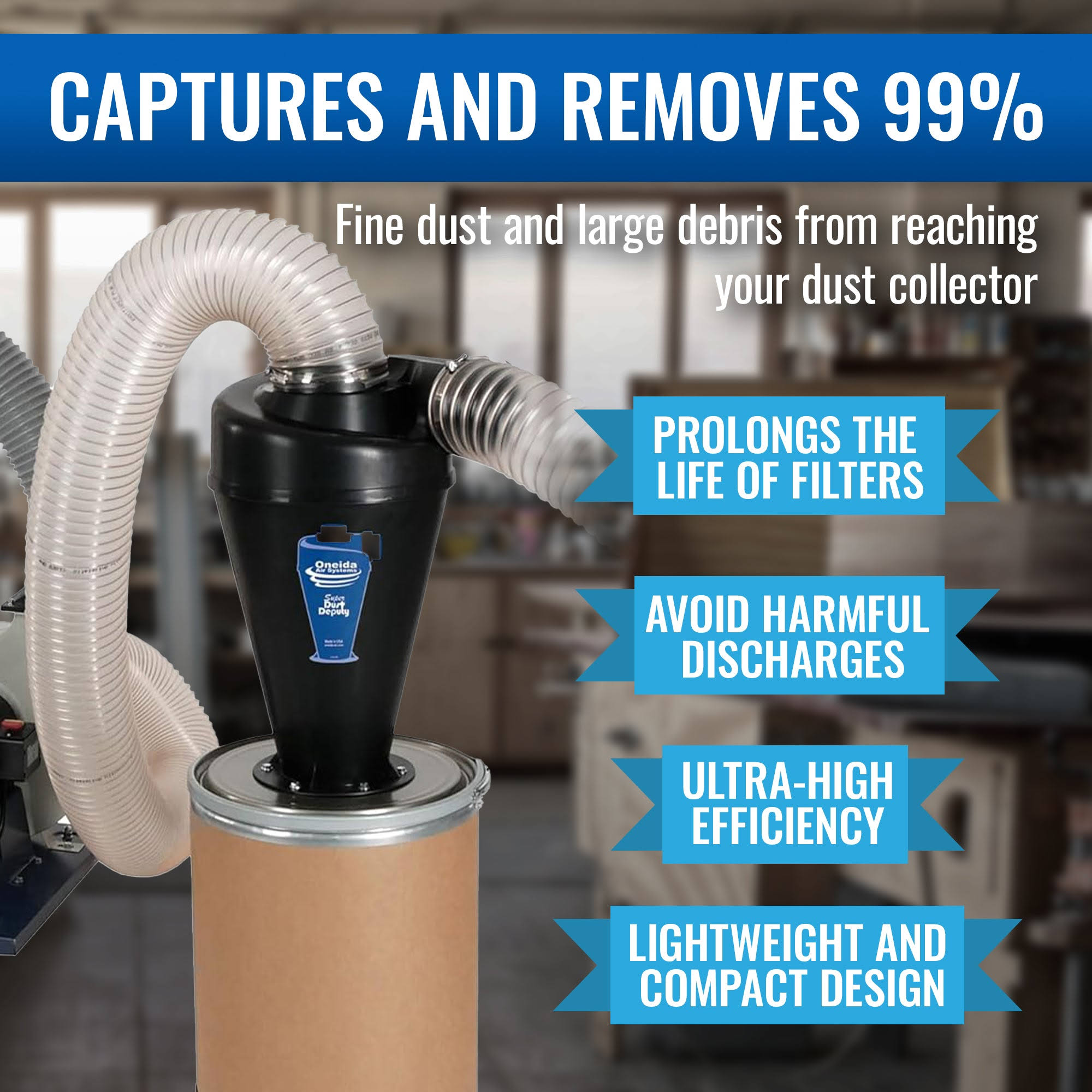 Oneida Air Systems Super Dust Deputy 4/5 DIY Cyclone Attachment, Black