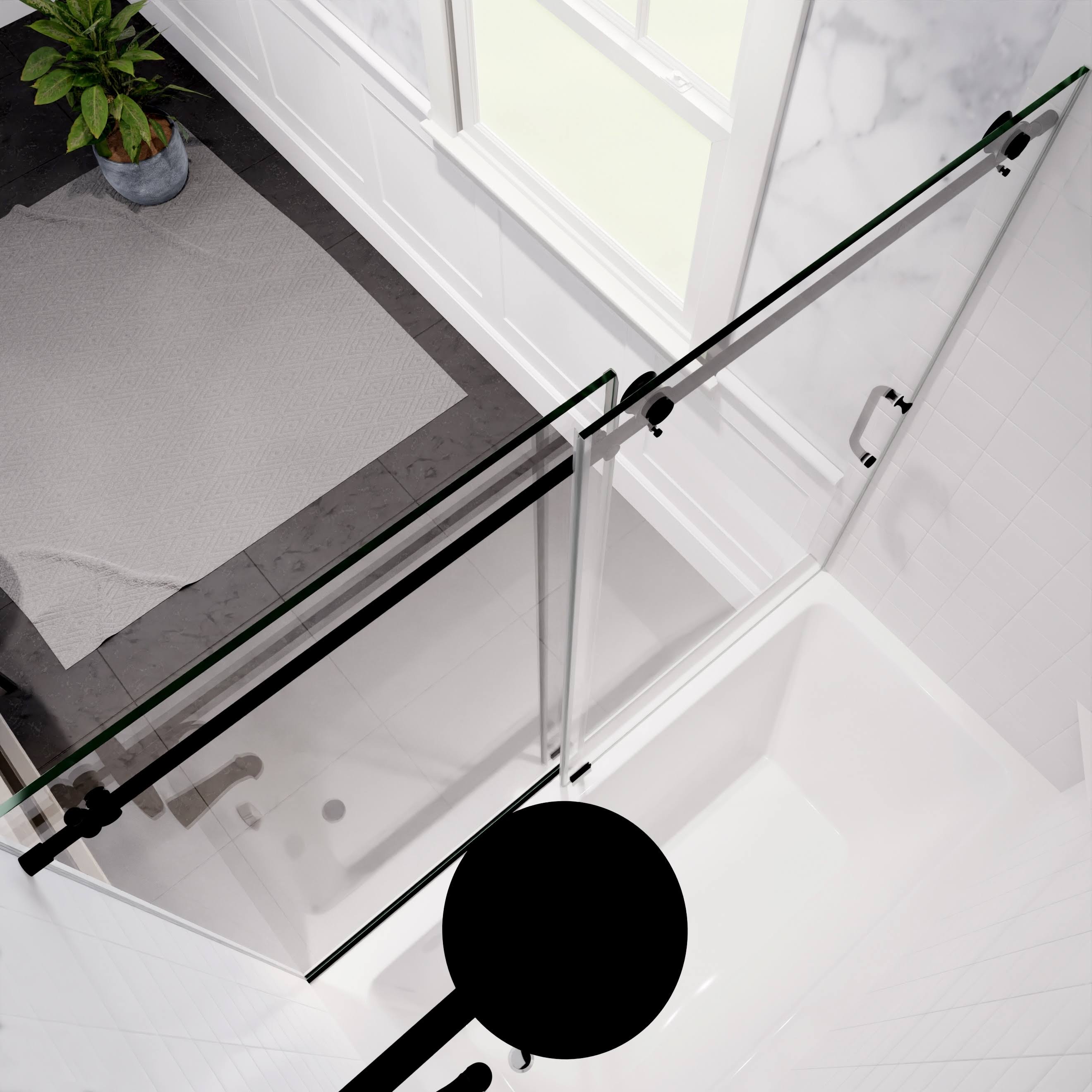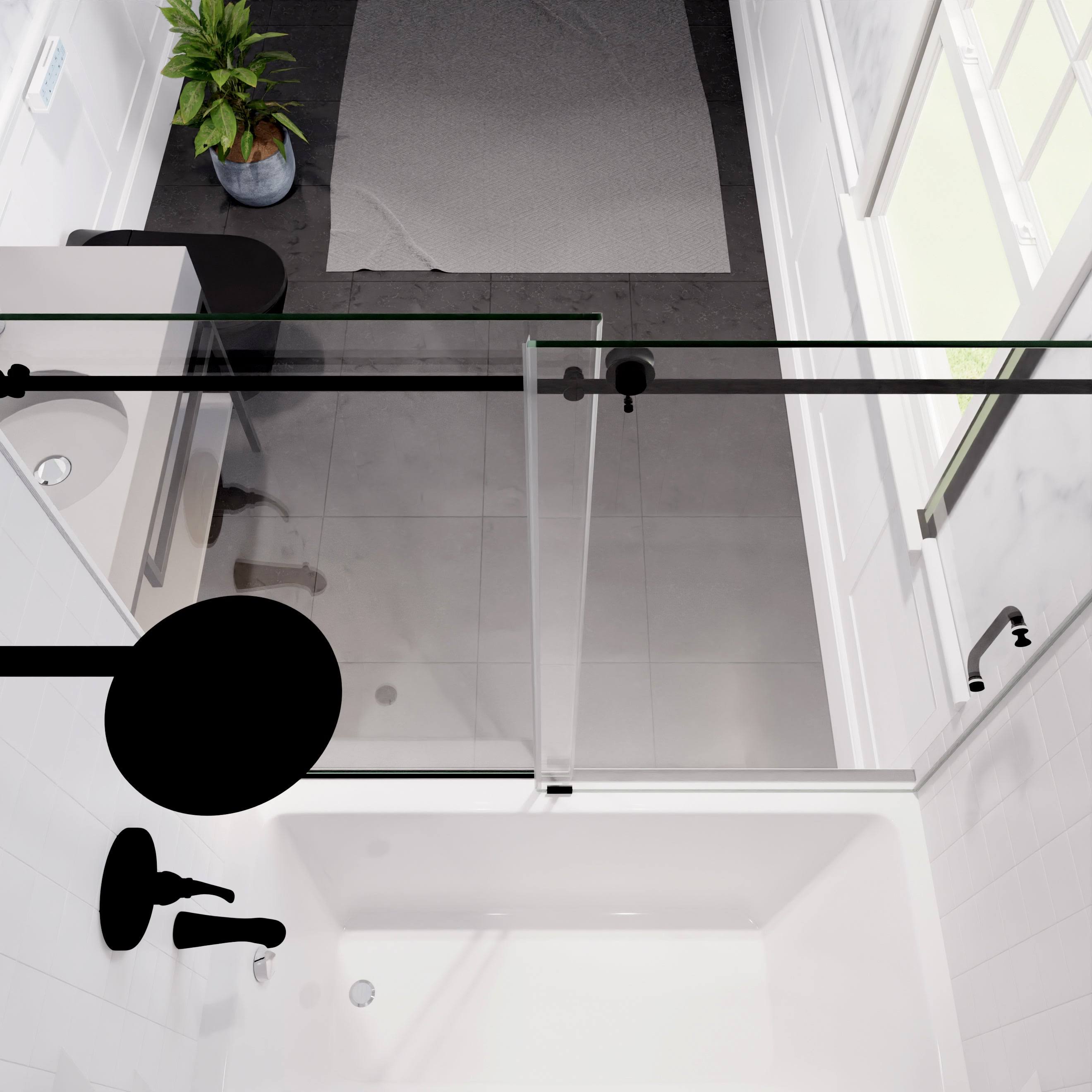 Anzzi Don Series 60" x 62" Frameless Sliding Tub Door in Matte Black- SD-AZ17-01MB