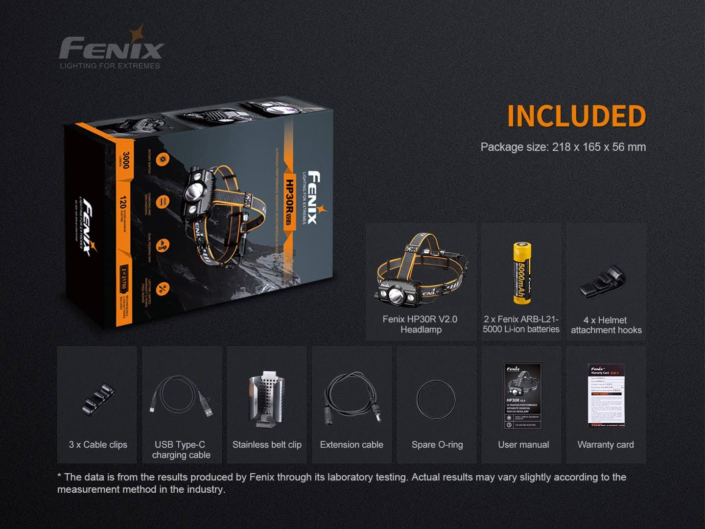 Fenix HP30R V2 3000 Lumen USB-C Rechargeable LED HEADLAMP, 2 x Rechargeable Batteries with EdisonBright USB Charging Adapter Bundle