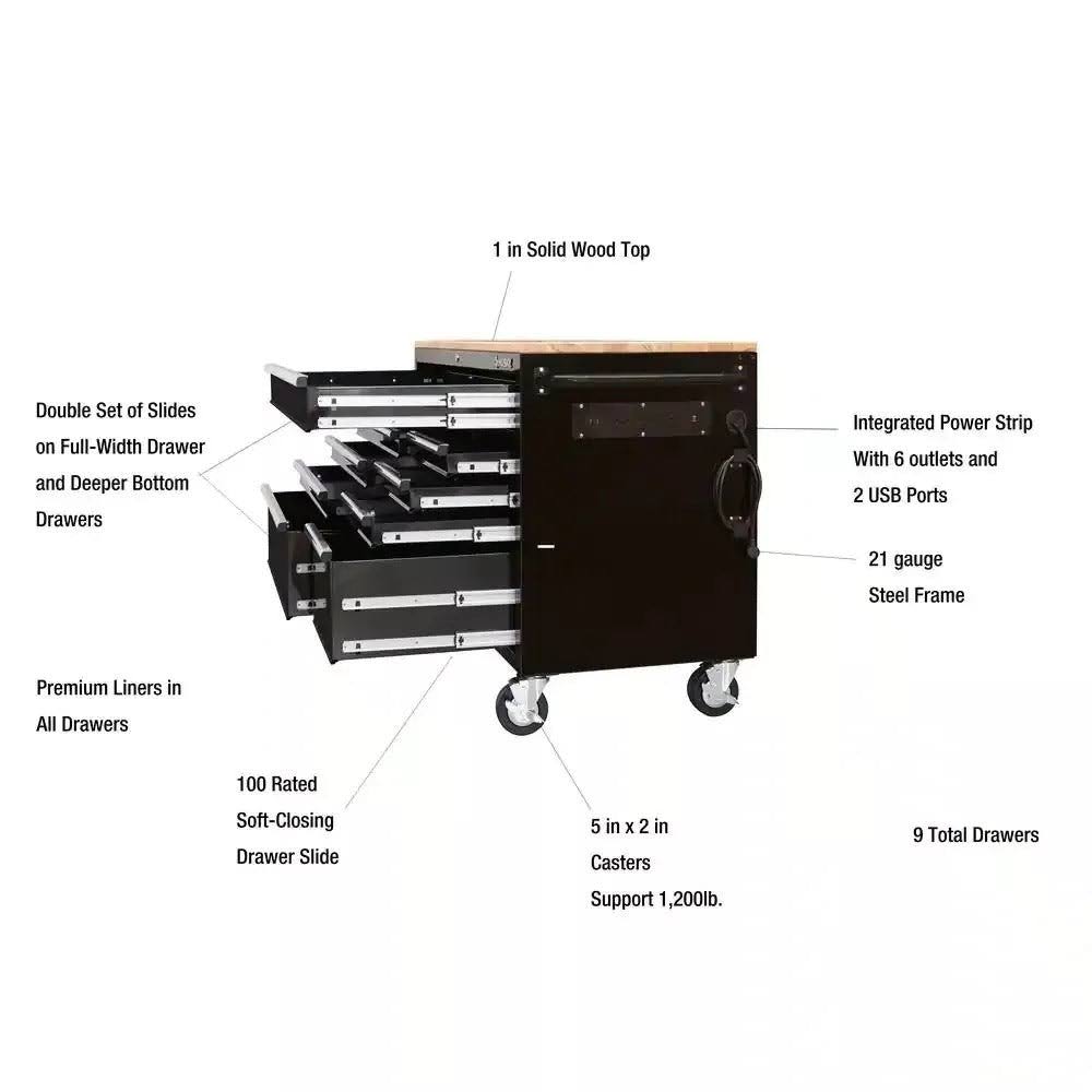 Husky 52 in. W 9-Drawer Deep Tool Chest Mobile Workbench in Gloss Black
