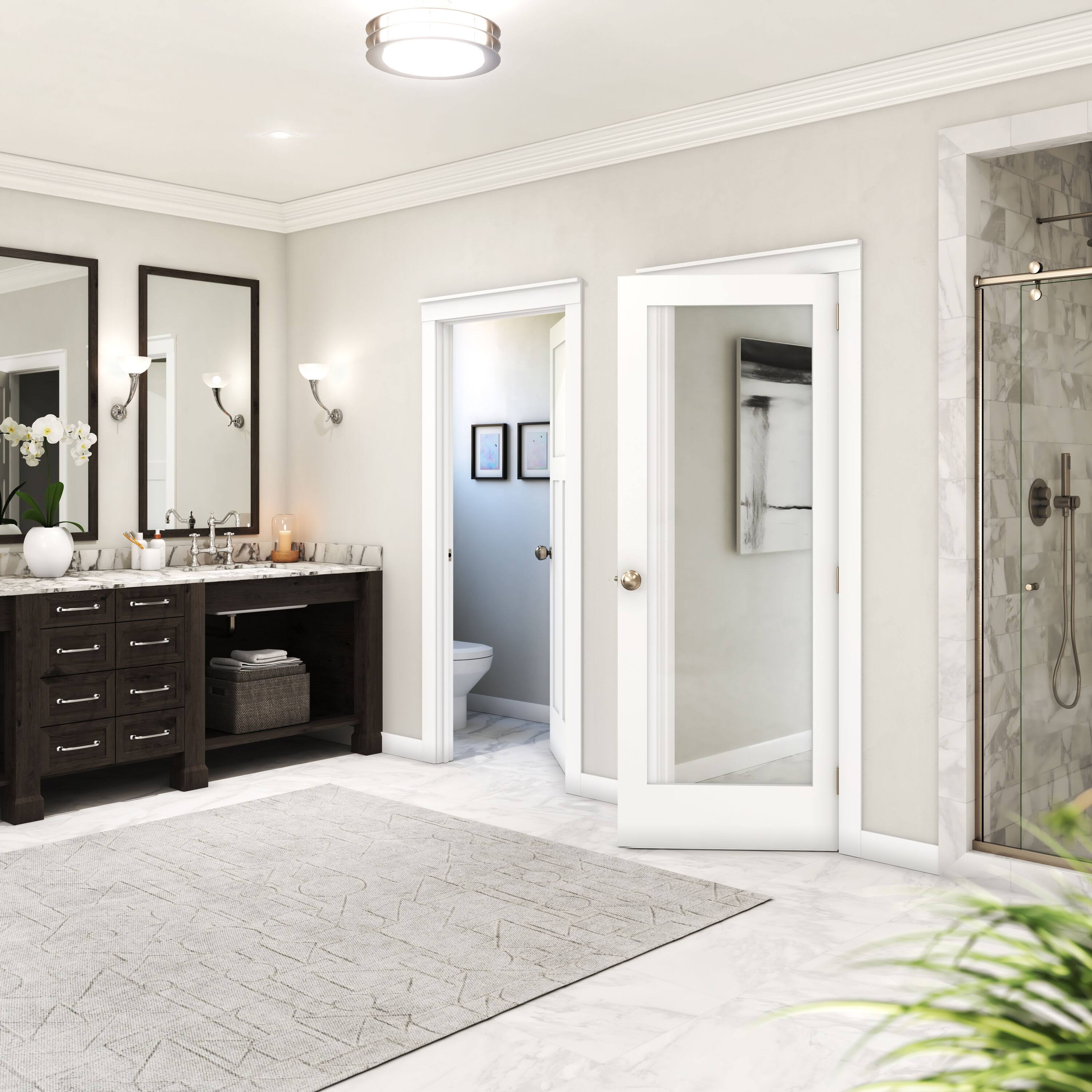EightDoors 24-in x 80-in White 1-Panel Square Clear Glass Solid Core Primed Pine Wood Slab Door | 50388014802435SH