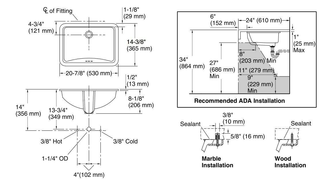 KOHLER K-2214-0 Ladena 20-7/8 In. x 14-3/8 In. Undermount Bathroom Sink, White