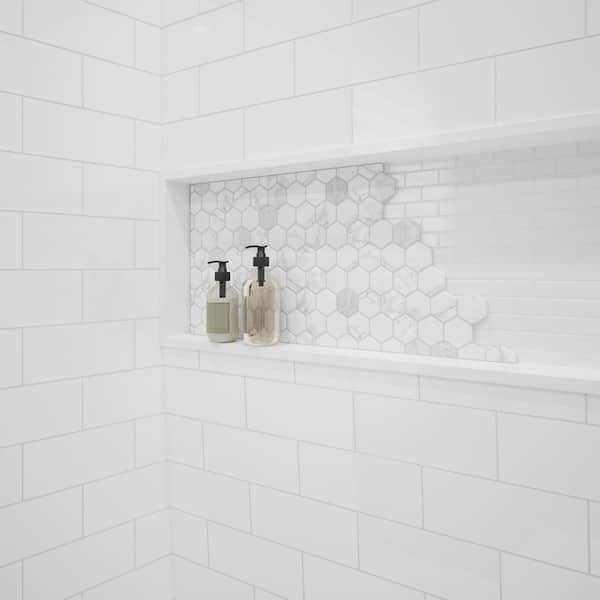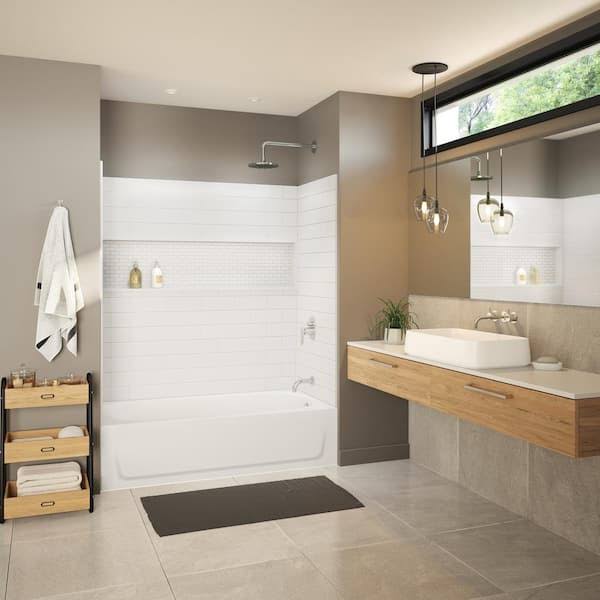 Bootz Industries NexTile 60 in. W x 74 in. H x 30 in. D 4-Piece Direct-to-Stud Alcove Subway Tile Shower Wall Surround in White