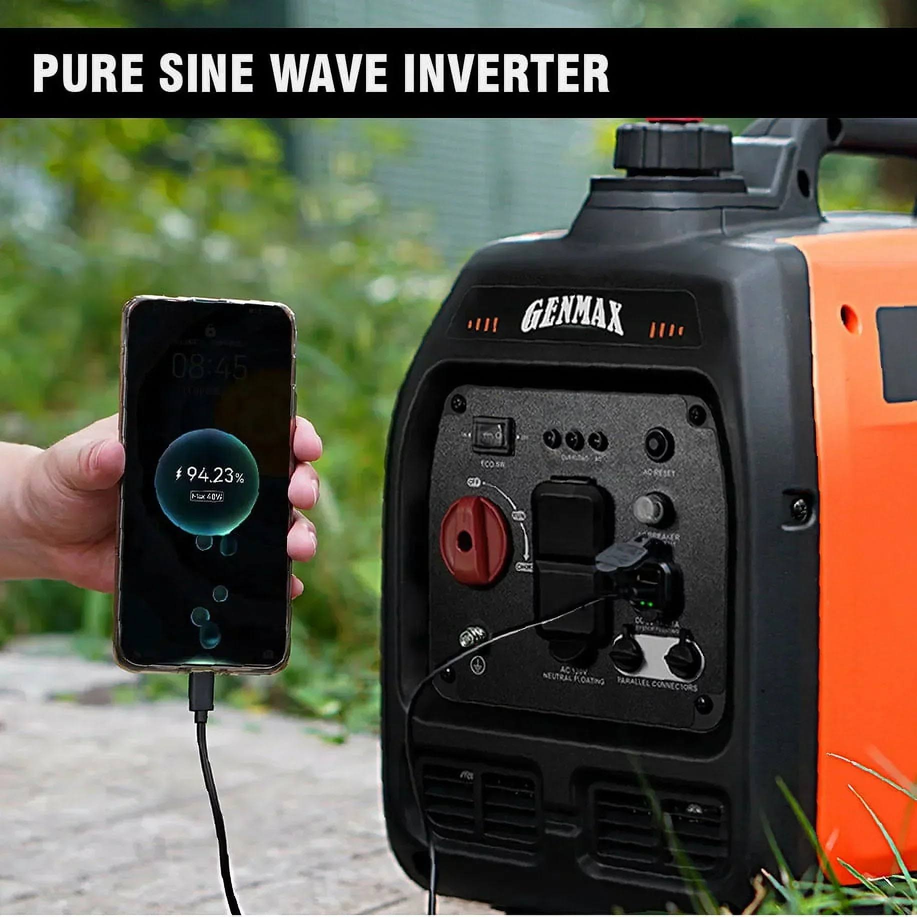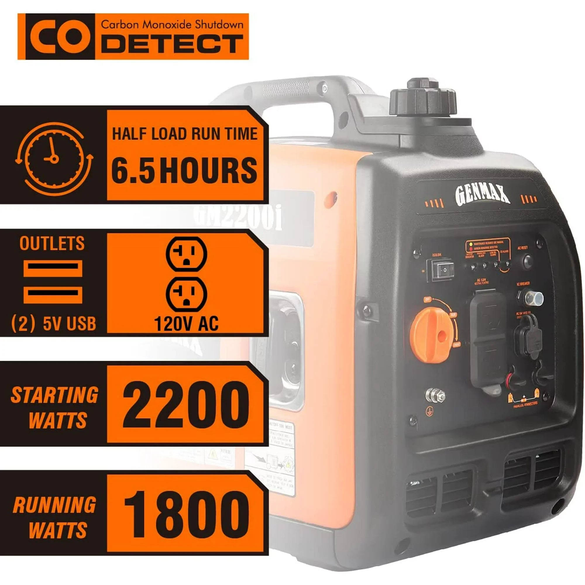 GENMAX Portable Inverter Generator,2200W Ultra-Quiet GAS Engine, EPA Compliant, Eco-Mode Feature, Ultra Lightweight for Backup Home Use & Camping