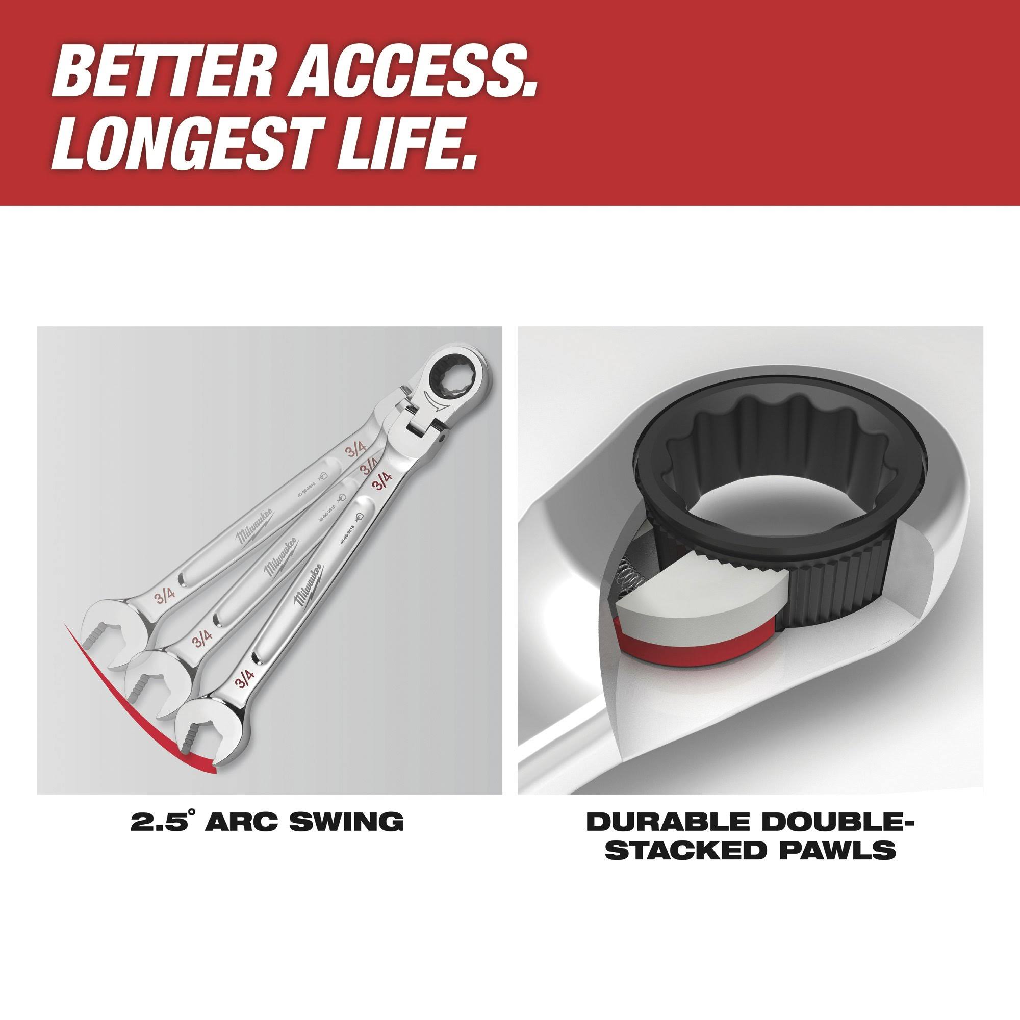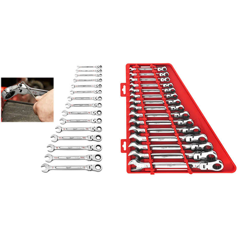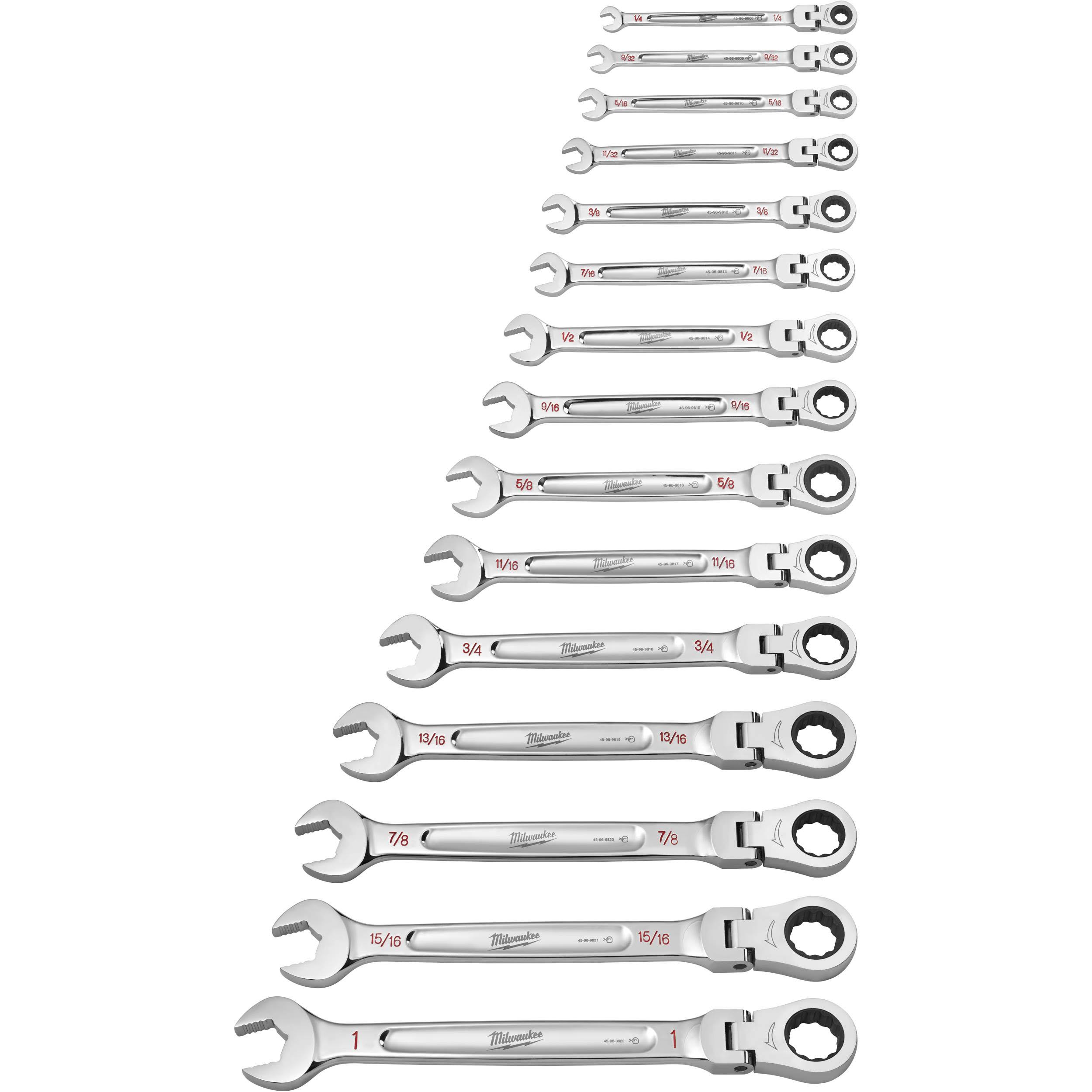 Milwaukee 48-22-9413 15 Piece SAE Flex Head Ratcheting Combination Wrench Set