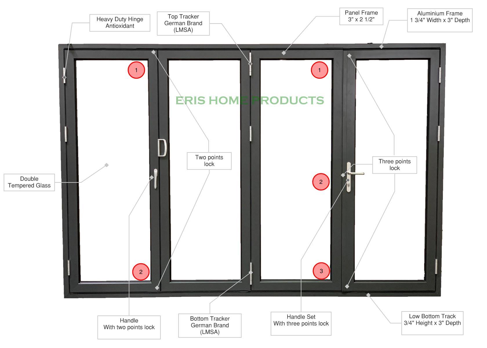 Eris Bifold Doors 120-in x 96-in Low-E Argon Black Aluminum Folding Left-Hand Outswing Patio Door | BFO-12096-1L3R