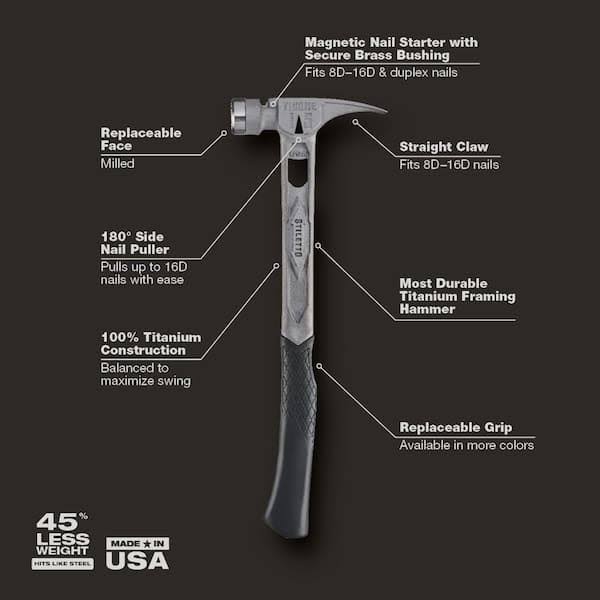 Stiletto 15 oz. TiBone Smooth Face with Curved Handle with 7 in. Carpenter Square (2-Piece)