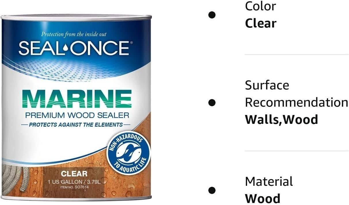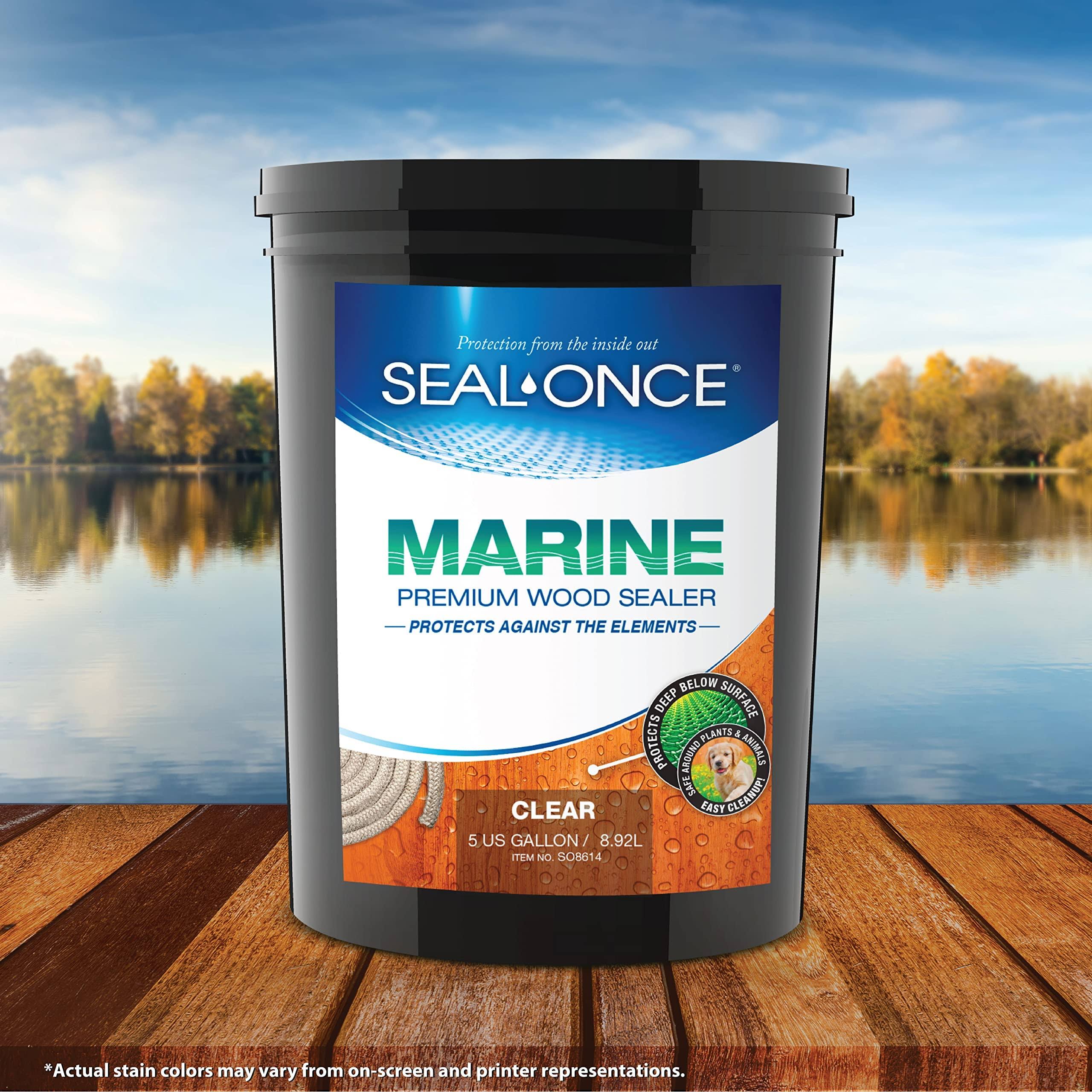 Seal-once Marine Premium Wood Sealer- Waterproof Sealant- Wood Stain and Sealer in One- 5 Gallon & Clear