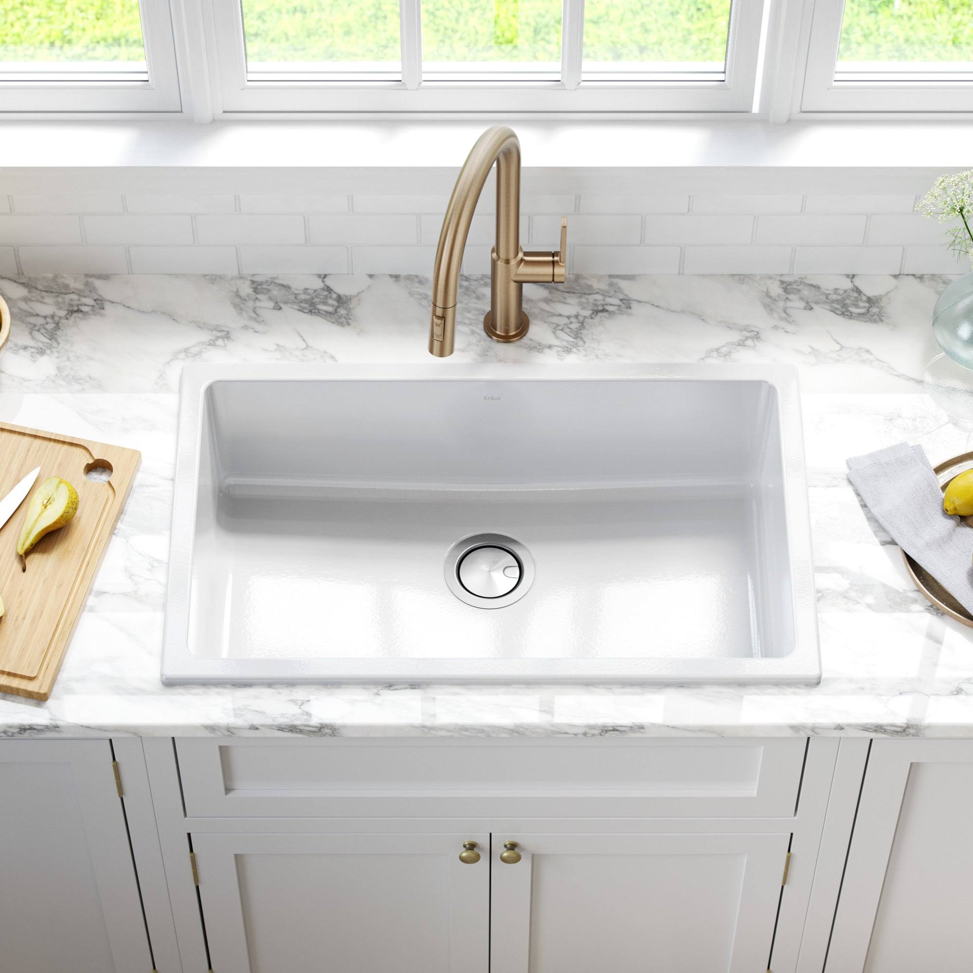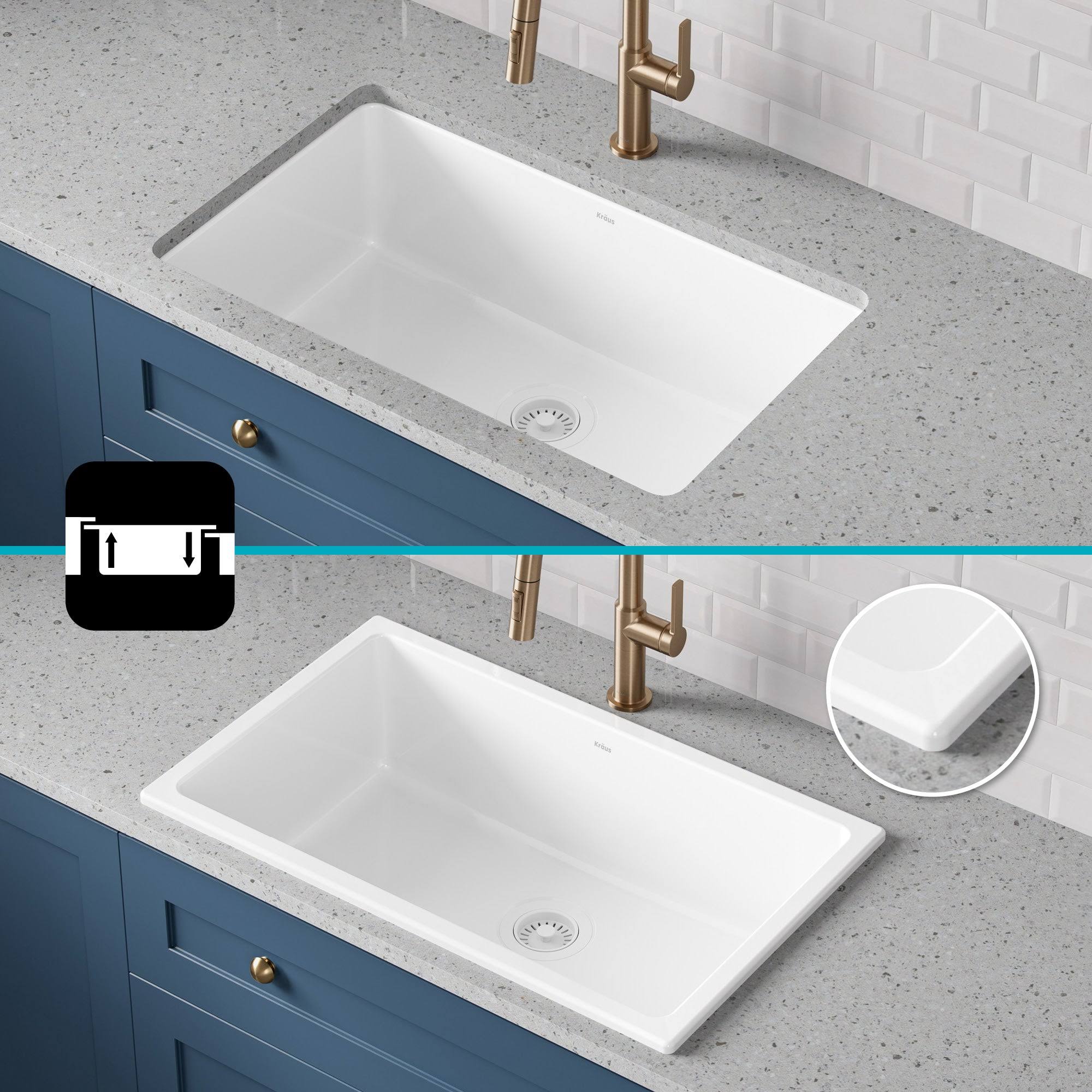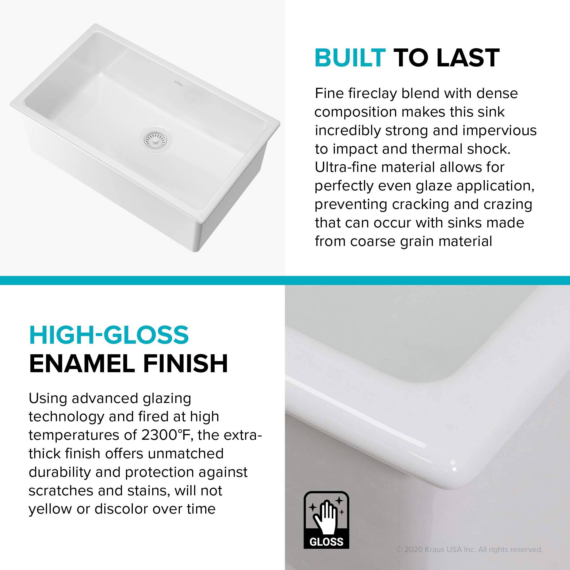 Kraus KFD1-30GWH Turino 30 inch Drop-In Undermount Fireclay Single Bowl Kitchen Sink with Thick Mounting Deck in White