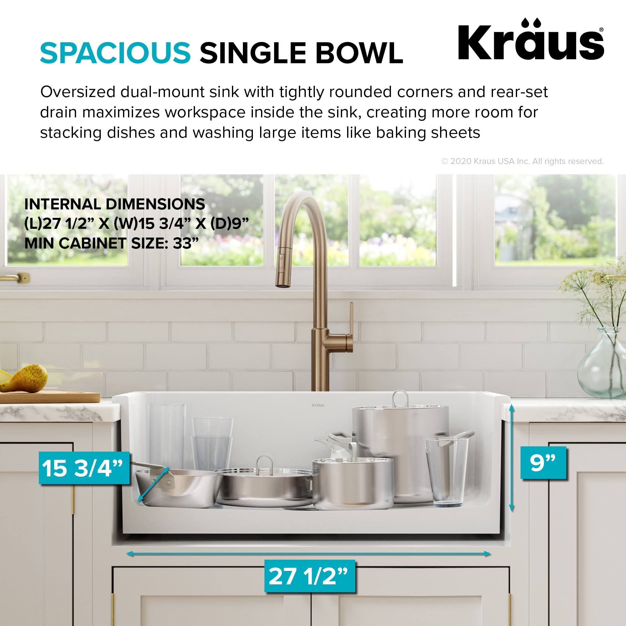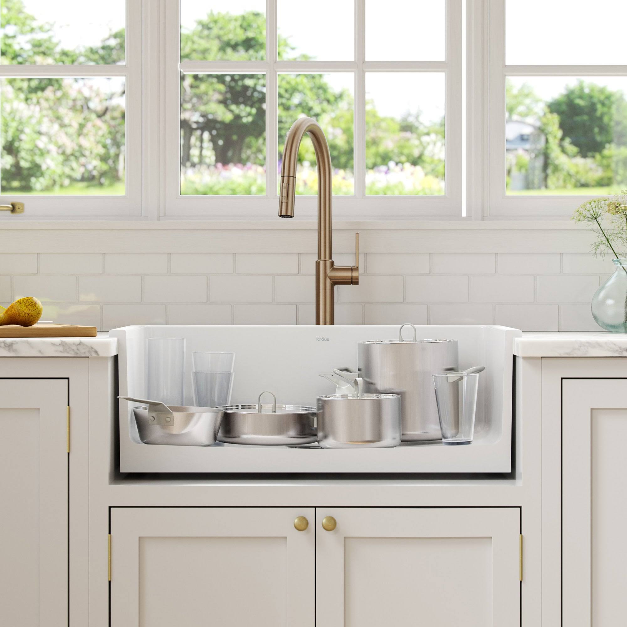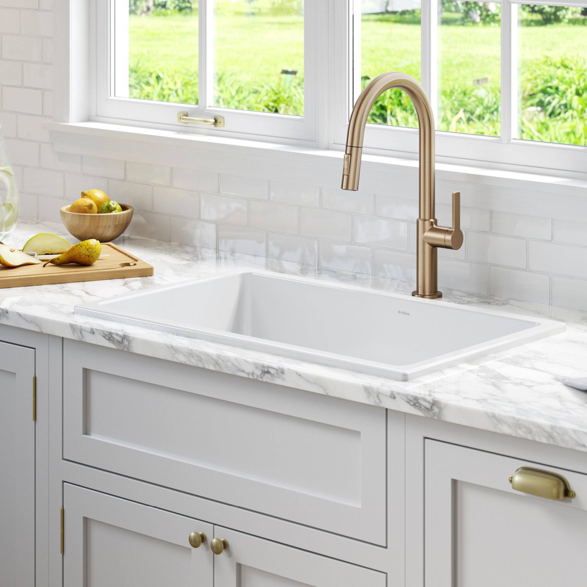 Kraus KFD1-30GWH Turino 30 inch Drop-In Undermount Fireclay Single Bowl Kitchen Sink with Thick Mounting Deck in White