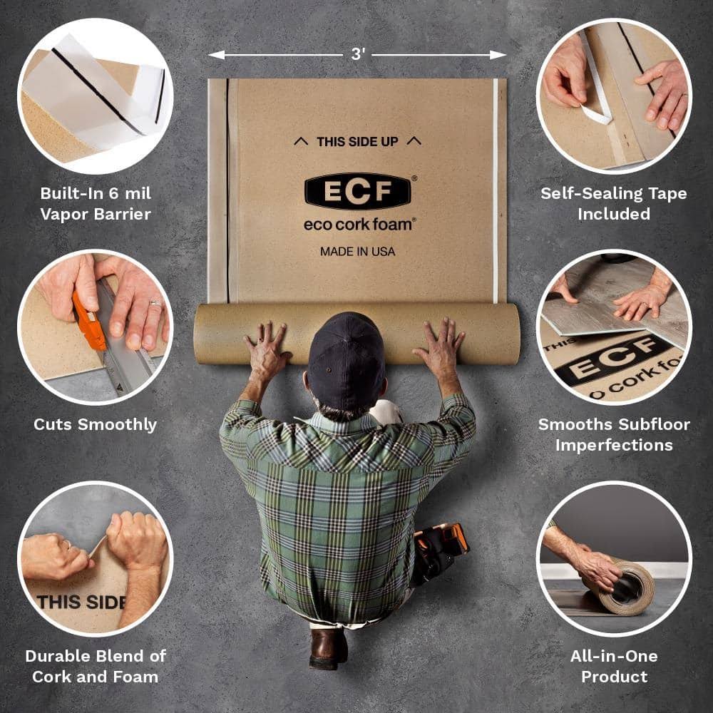 Eco Cork Foam 300 Sq. ft. 3 ft. x 100 ft. X3.2MM Waterproof