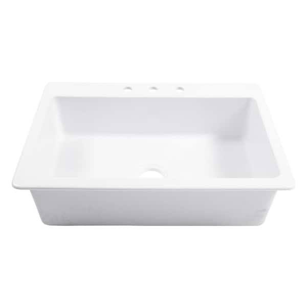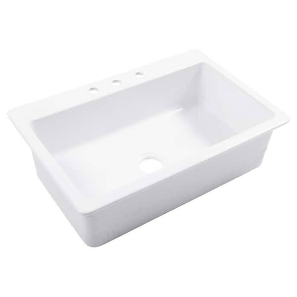 Jackson 33 in. 3-Hole Drop-In Single Bowl Crisp White Fireclay Kitchen