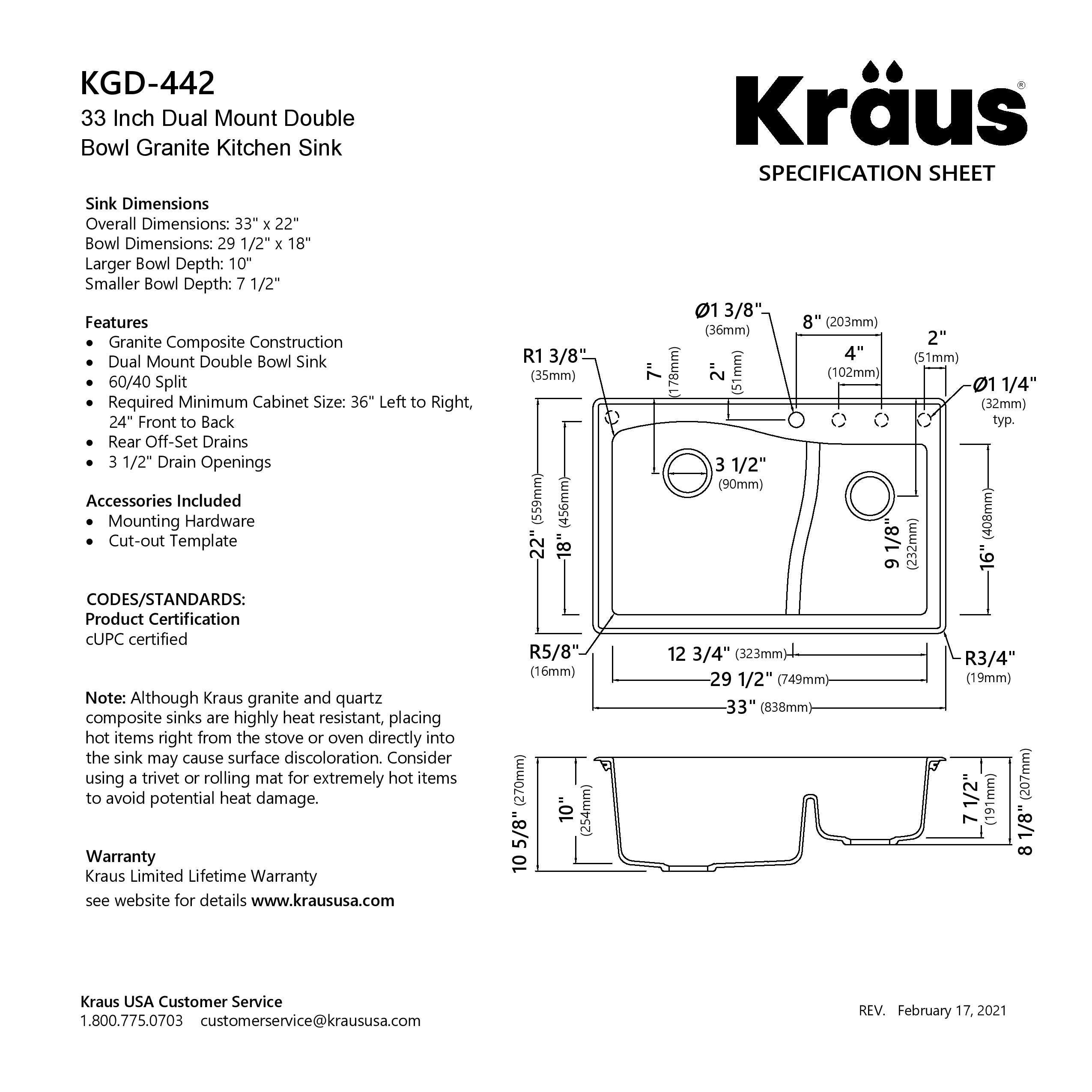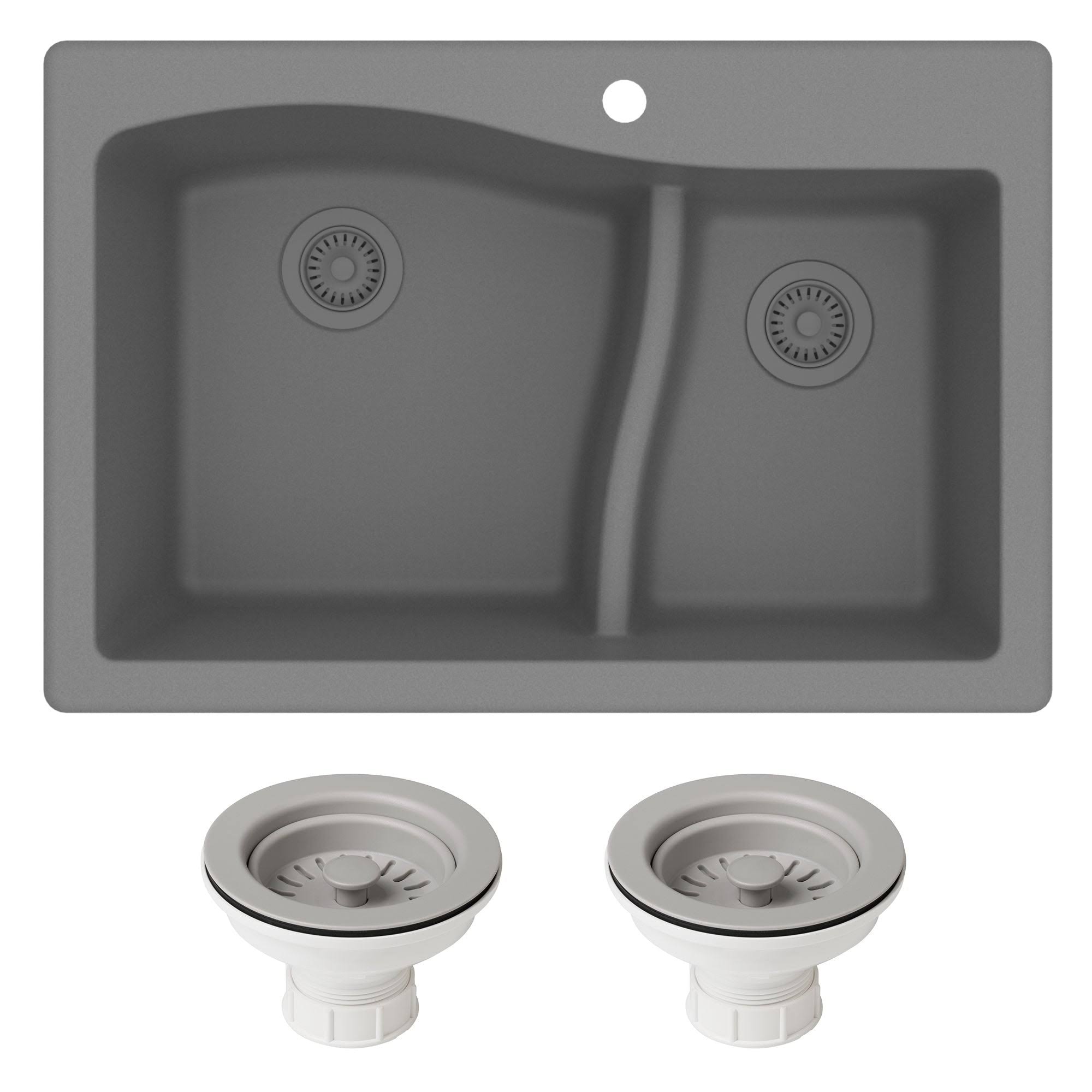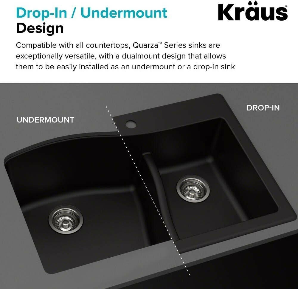 Kraus Quarza Dual Mount 60/40 Double Bowl Granite Kitchen Sink