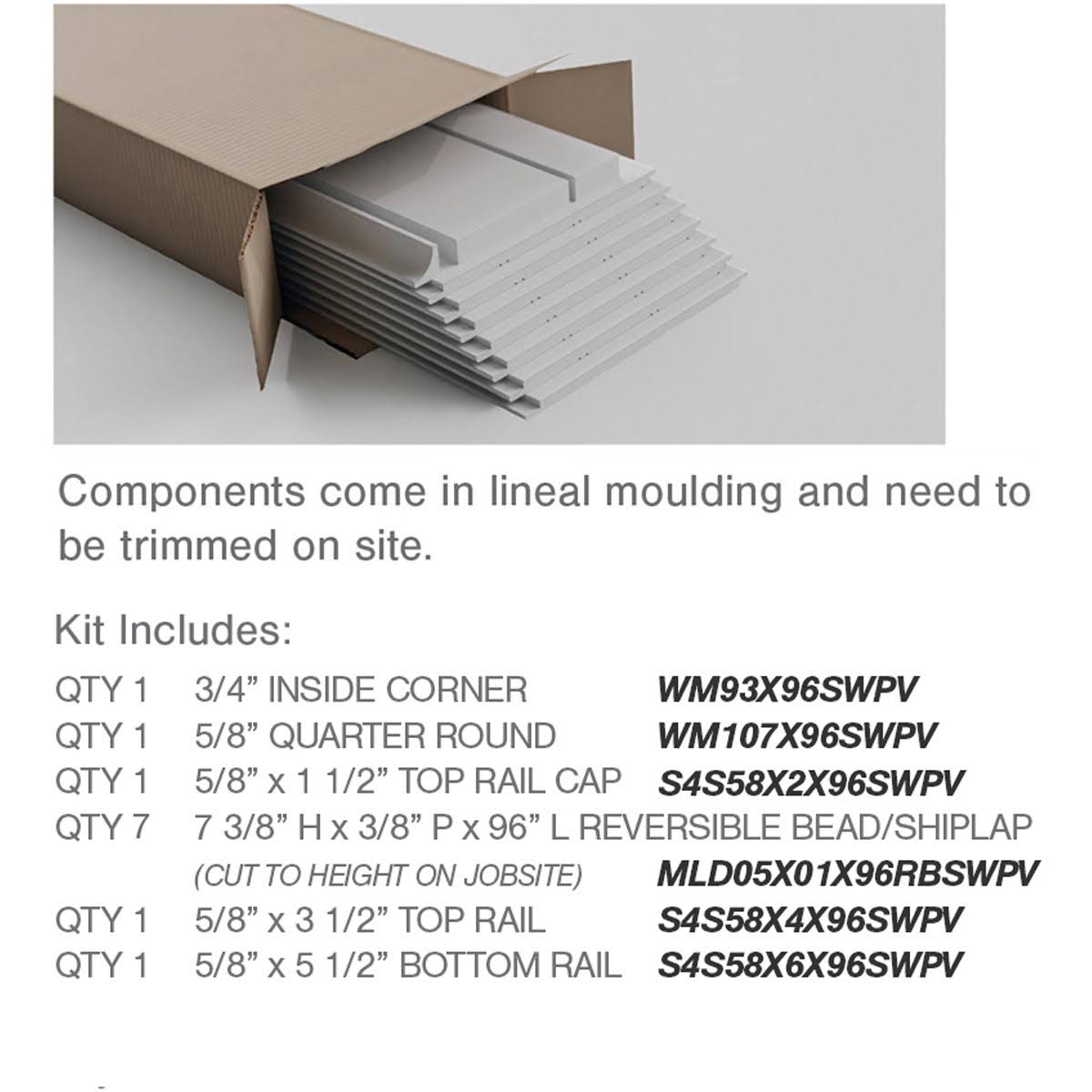 Deluxe Nickel Gap 8' Length PVC Wainscoting Kit (Heights Up to 35-5/8 inches)