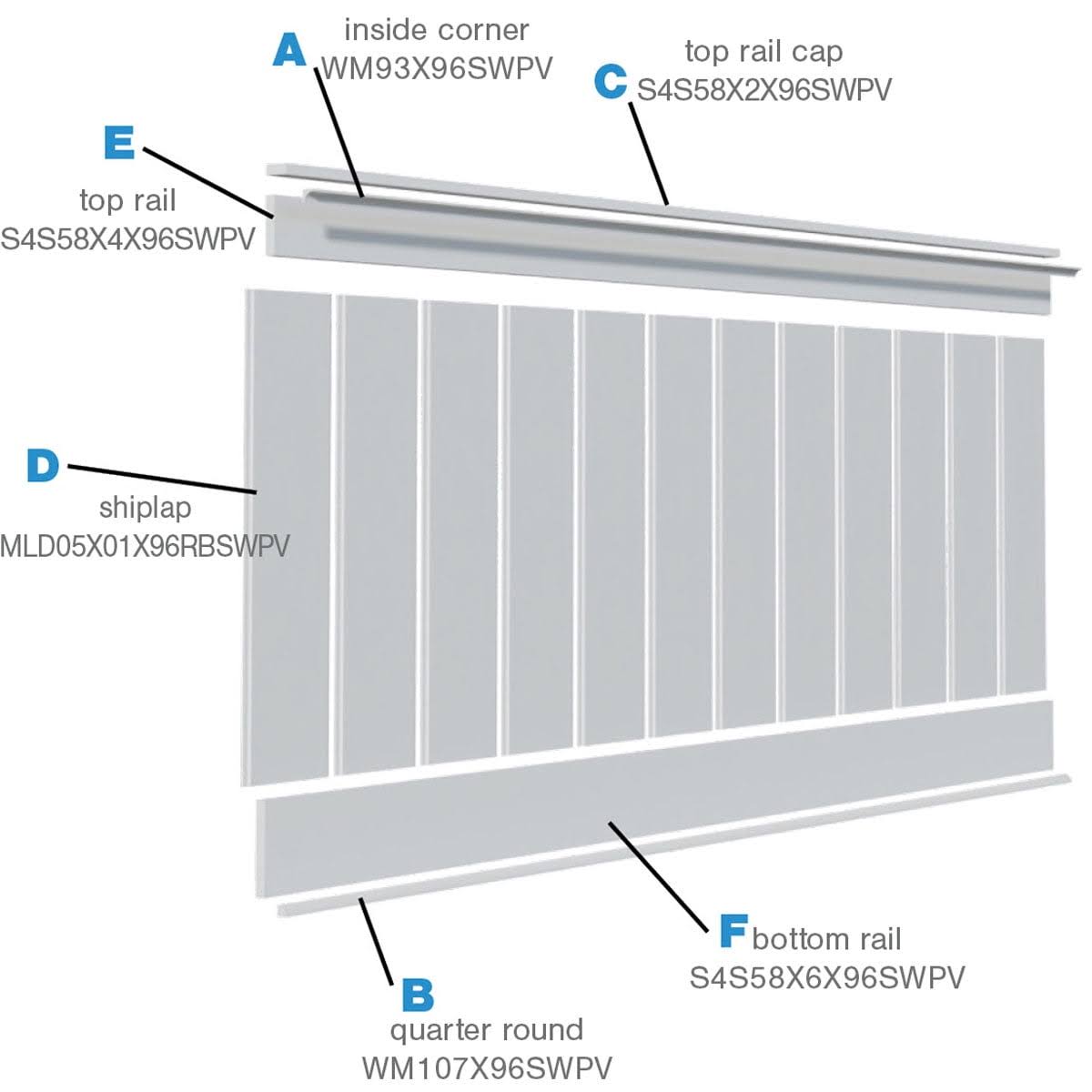 56" Height Deluxe Shiplap with A Nickel Gap 8' Length PVC Wainscoting Kit, (FOR Heights Up to 57-5/8")