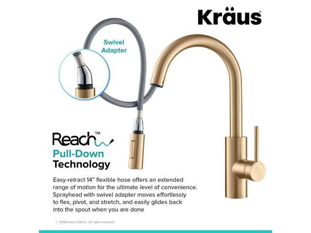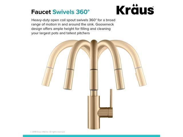 Kraus Oletto Single Handle Pull Down Gooseneck Kitchen Sink Faucet, Gold Finish