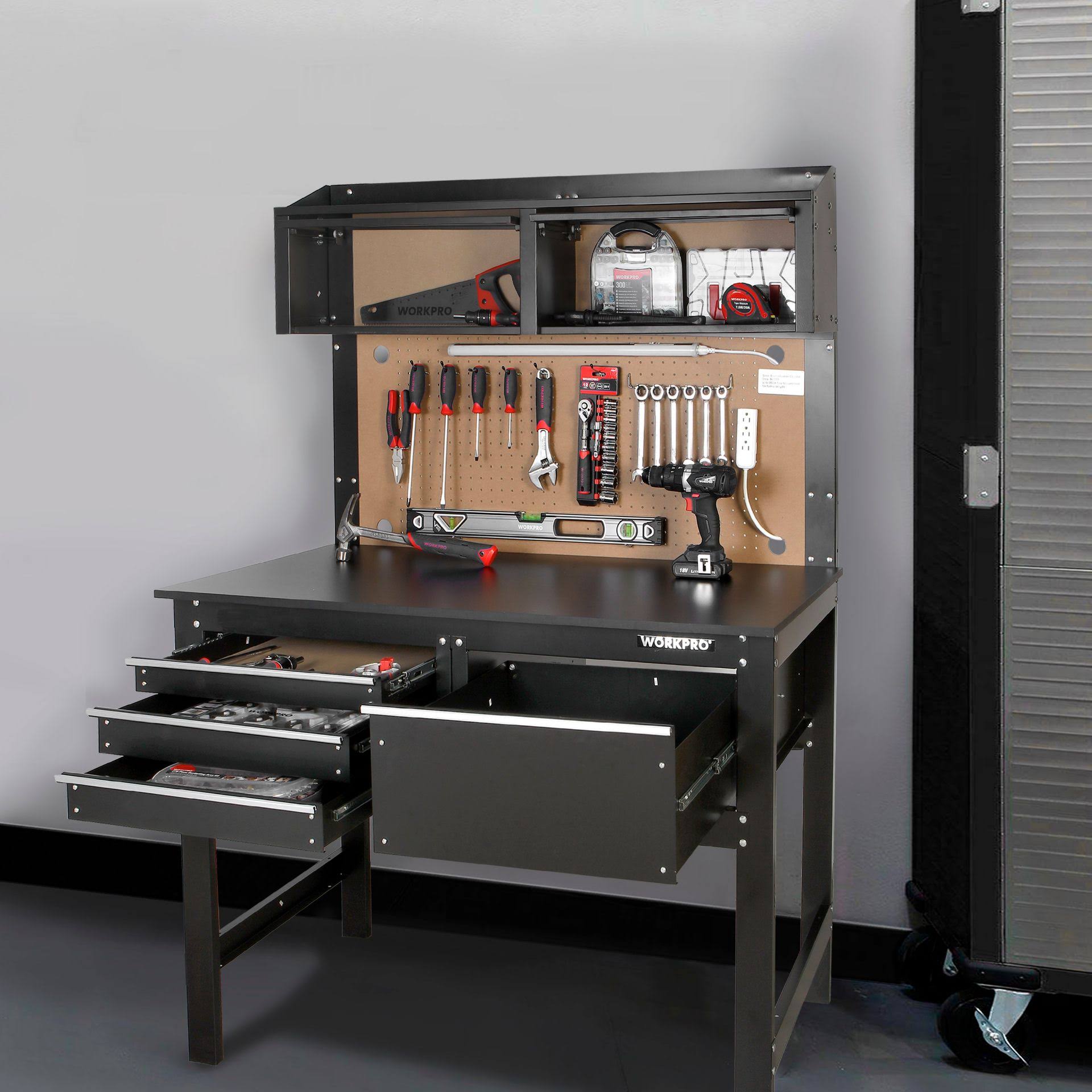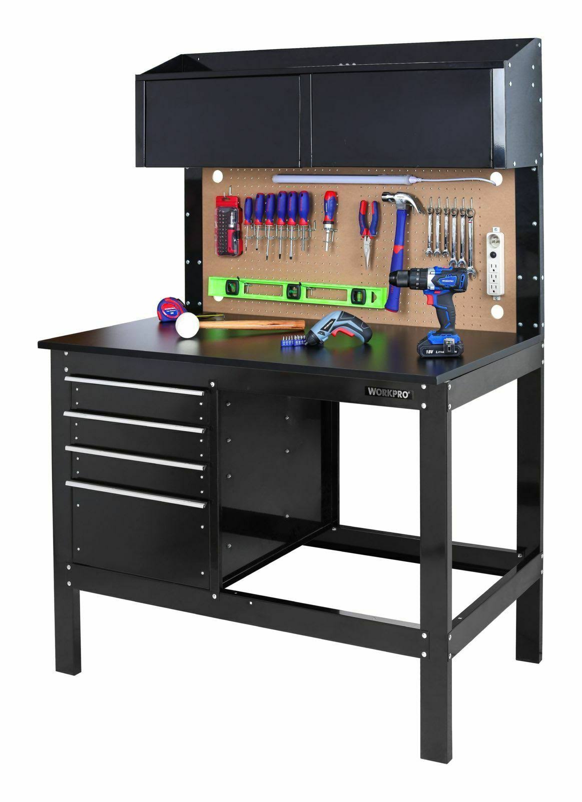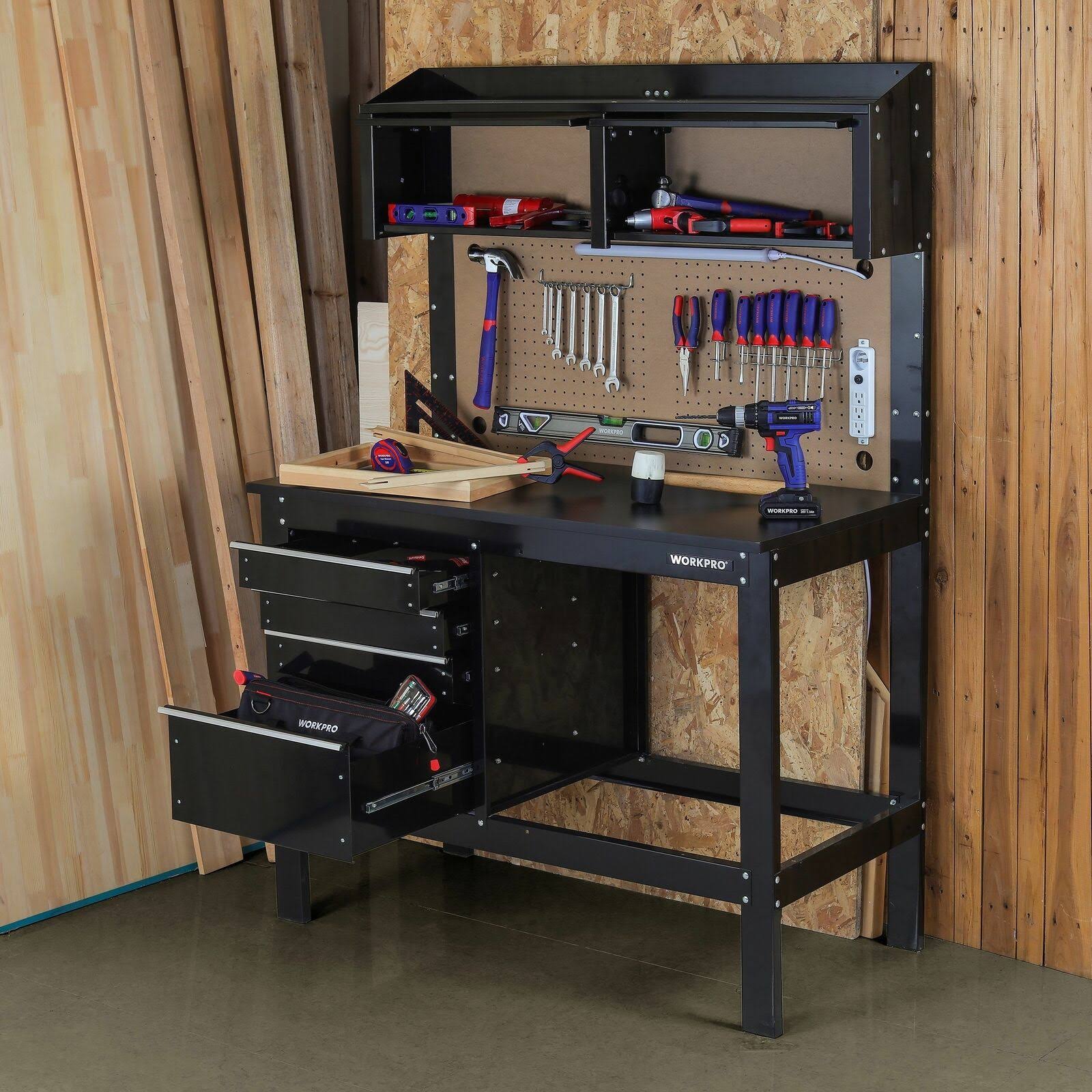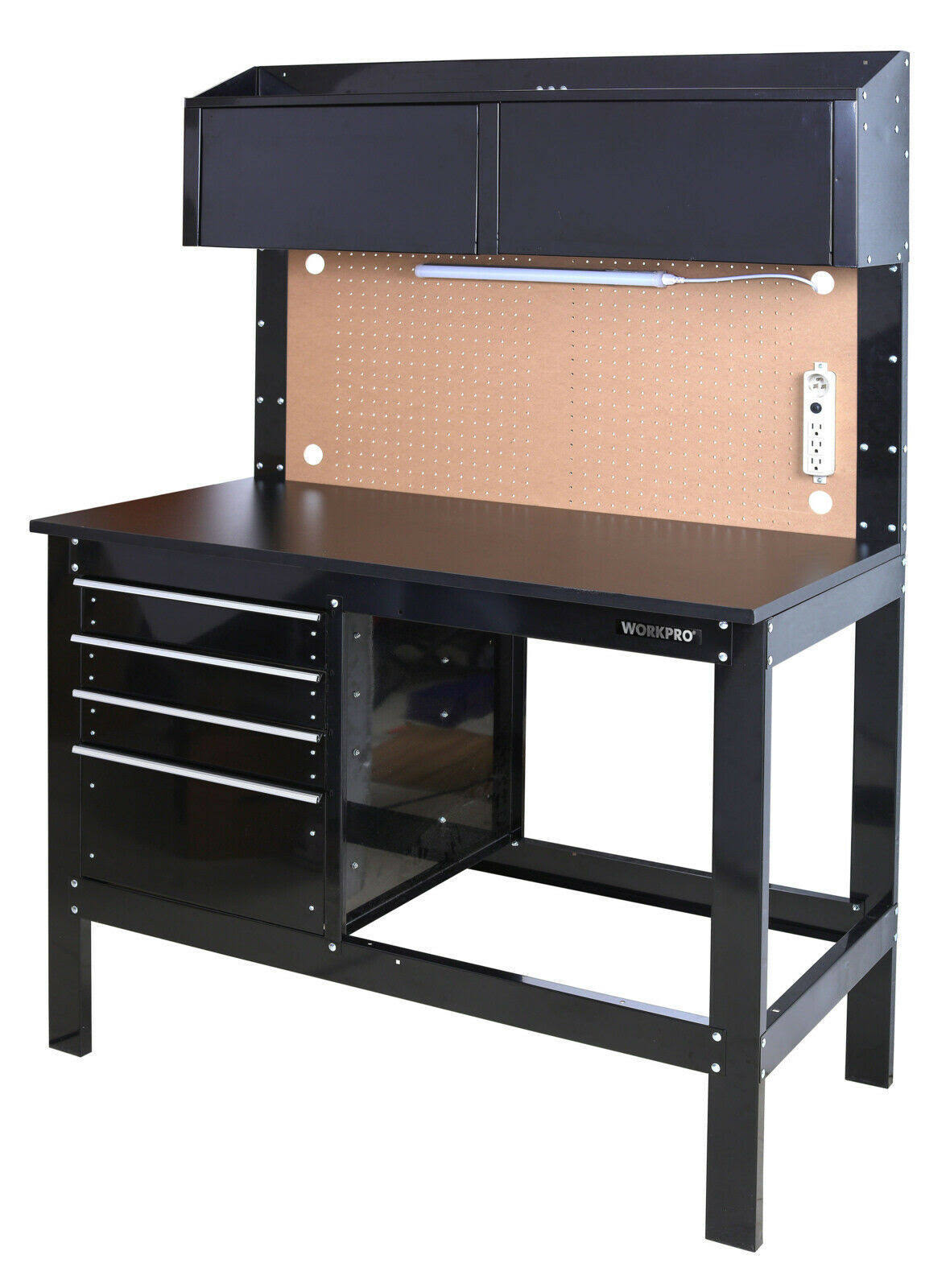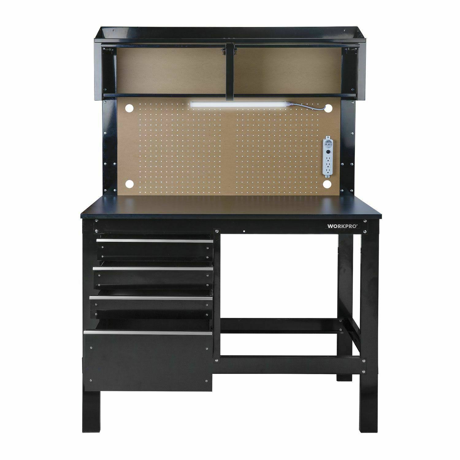 WorkPro 2-in-1 48in Workbench and Cabinet Combo with Work Light