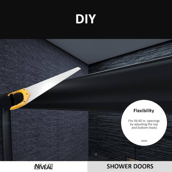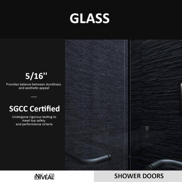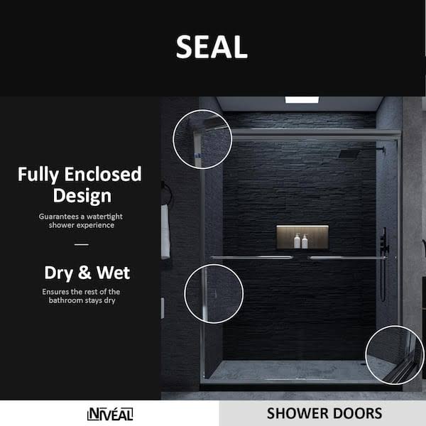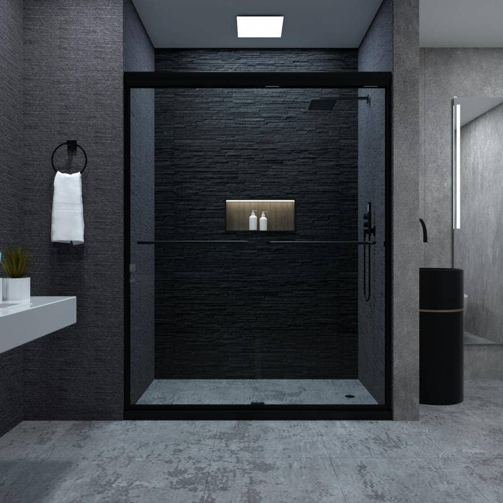 niveal Vale 60 in. W x 72 in. H Sliding Semi-Frameless Shower Door in Matte Black with Clear Glass
