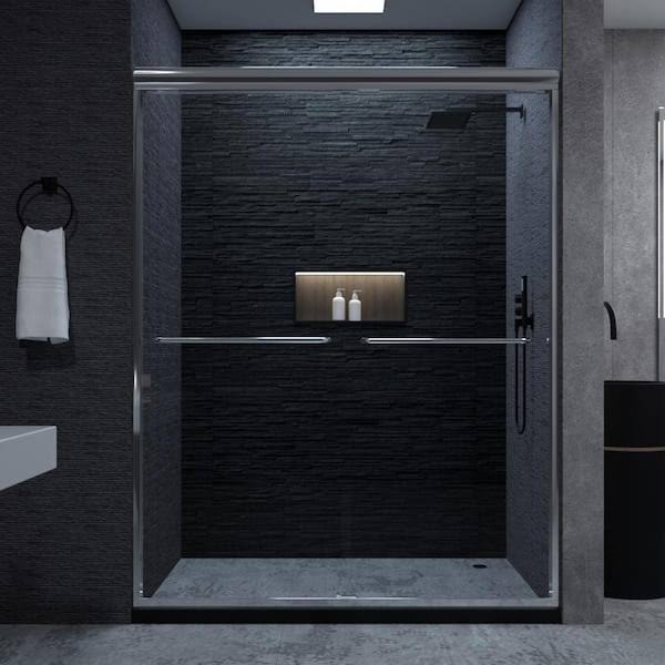 niveal Vale 60 in. W x 72 in. H Sliding Semi-Frameless Shower Door in Chrome with Clear Glass