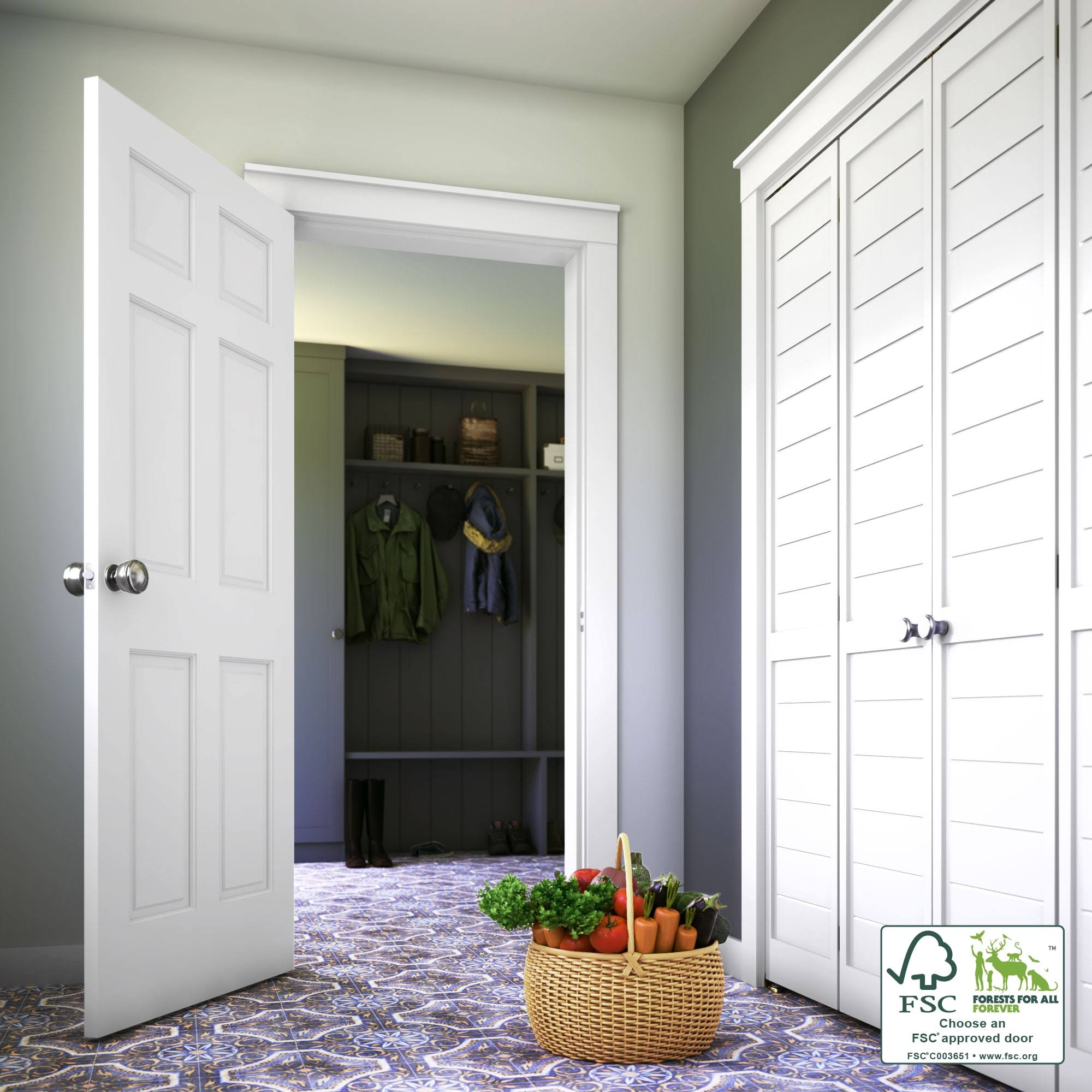 EightDoors 30-in x 80-in White Finished Louver Solid Core Prefinished Pine Wood Slab Door | 72488019803035W