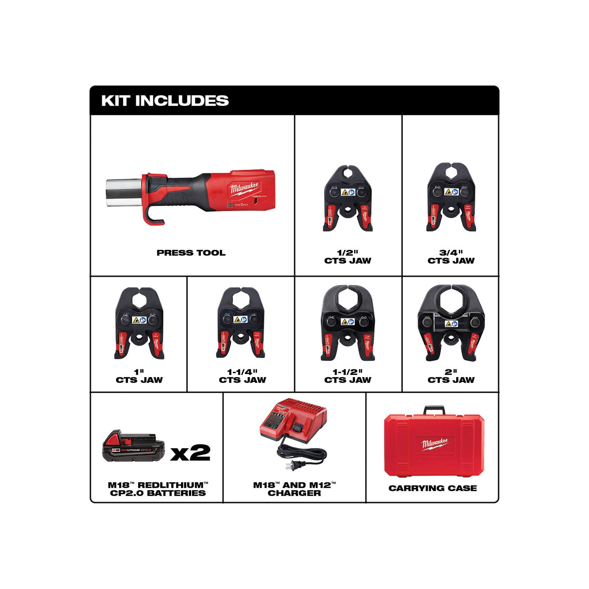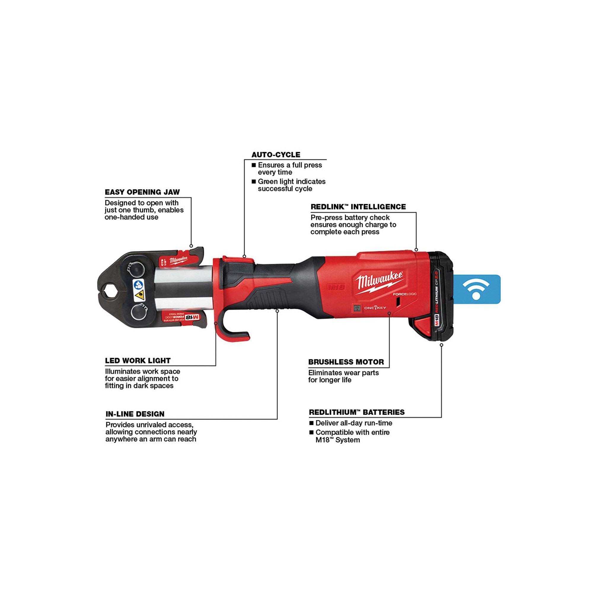Milwaukee 2922-22 M18 Force Logic Press Tool with One-Key, 1/2"-2" CTS Jaws